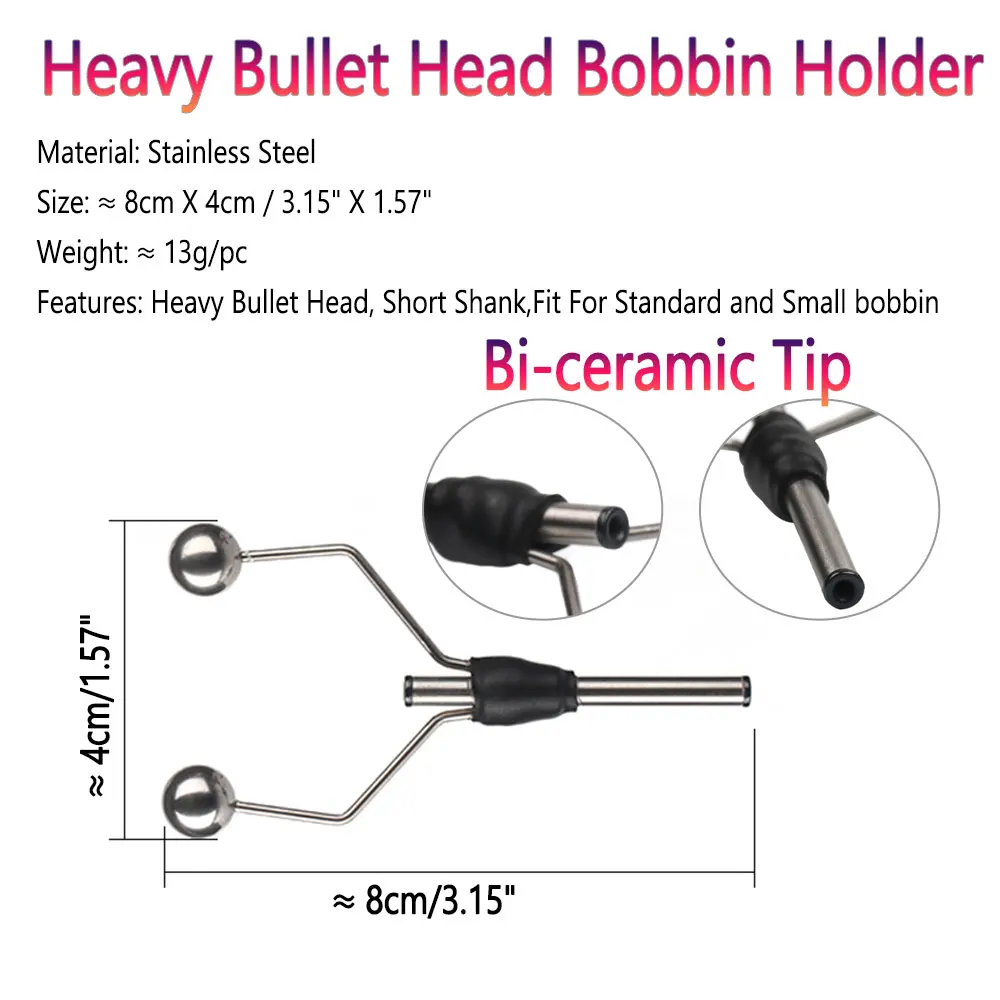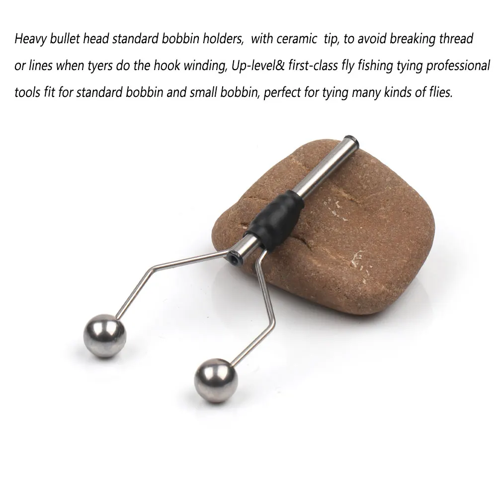 Soportes de bobina estándar con cabeza de bala pesada, con punta de cerámica, para evitar romper hilos o líneas cuando los atadores se enrollan con anzuelo, herramientas profesionales de atado de pesca con mosca de nivel superior y de primera clase aptas para bobinas estándar y bobinas pequeñas, perfectas para atar muchos tipos de moscas.