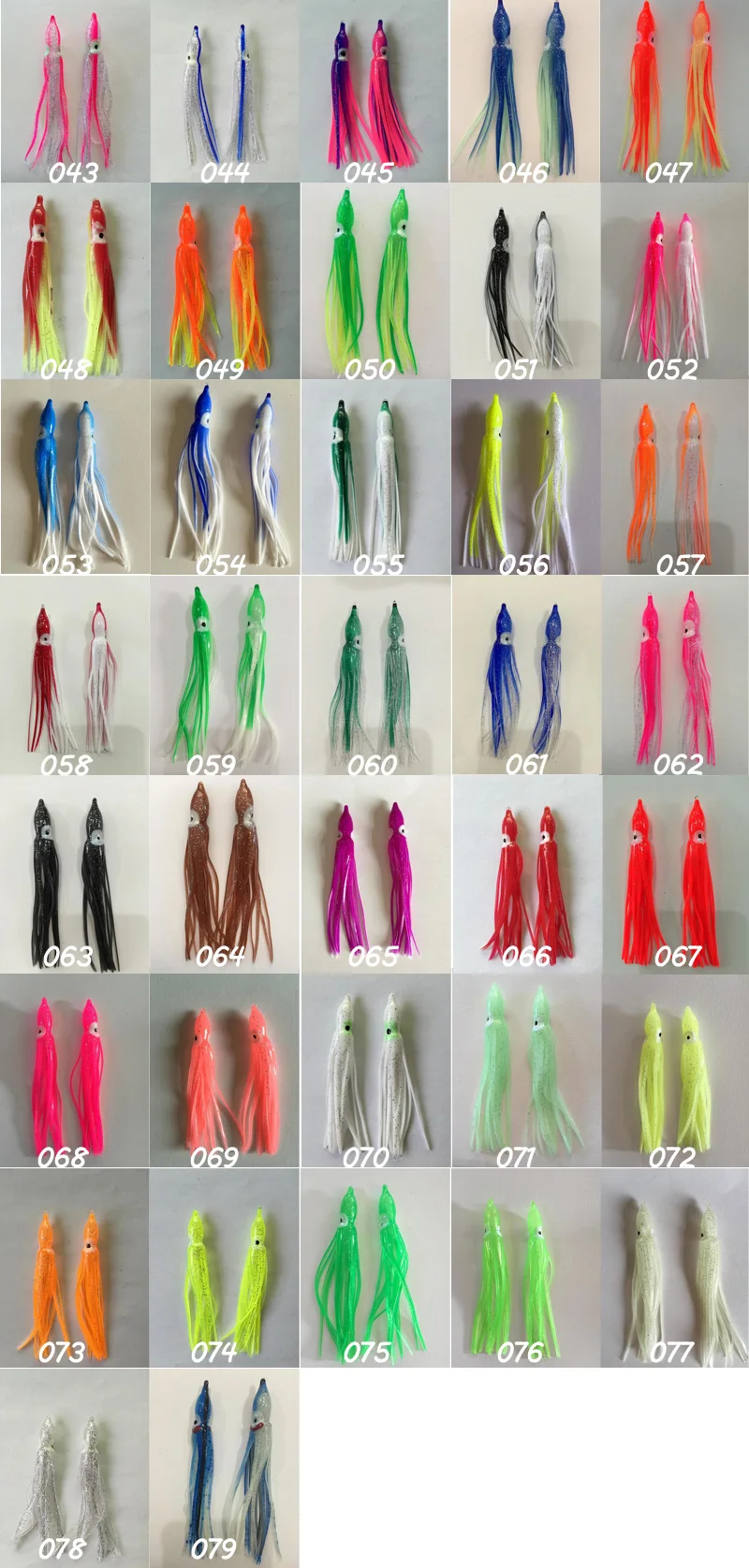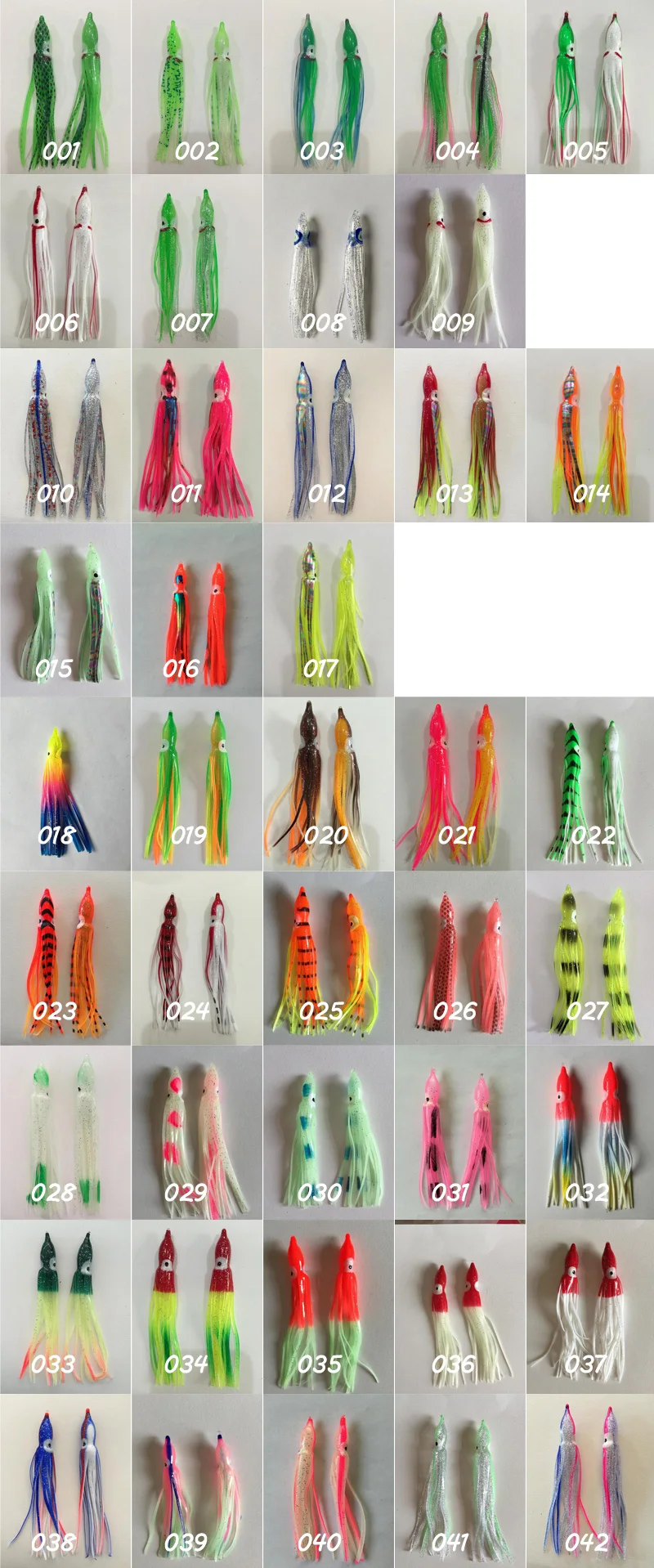 Bimoo 20 bolsas=100 piezas 9cm 3,54 pulgadas faldas de calamar suaves luminosas faldas de pulpo señuelo de pesca de agua salada Señuelos de Pesca de juego grande