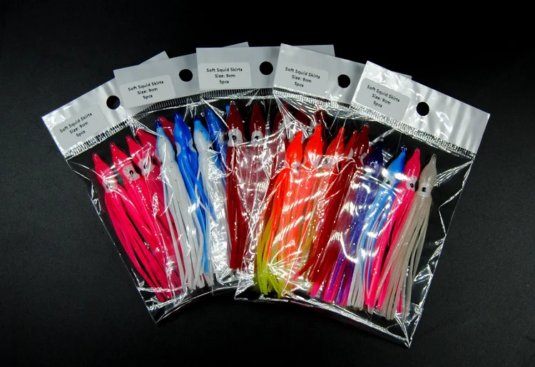 Bimoo 100 bolsas=500 piezas 9cm faldas de calamar suaves venta al por mayor paquete Individual luminoso Color personalizado disponible
