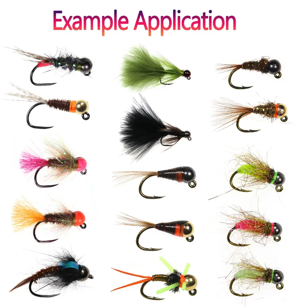 Aplicación: Perfecto para atar ninfas de jig, moscas húmedas de hundimiento rápido, señuelos de pesca en hielo, etc.