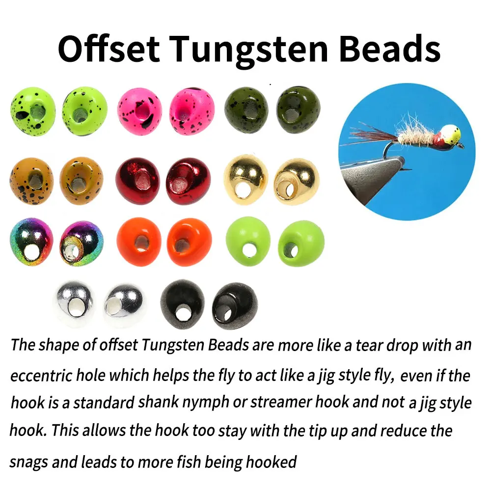 Las cuentas de tungsteno desplazadas son perfectas para agregar peso adicional, tienen forma de lágrima y están diseñadas para permitirle crear un efecto de plantilla de voltear la mosca boca abajo, sin la necesidad de usar un gancho de plantilla de ojos hacia abajo.Las cuentas de tungsteno desplazadas hacen que sus moscas nadan boca abajo. Esto permite que el anzuelo permanezca demasiado con la punta hacia arriba y reduce los enganches y conduce a más peces que se enganchen de forma segura.Perfecto para atar moscas húmedas de buceo profundo.Uso para ninfas, fugas, etc.