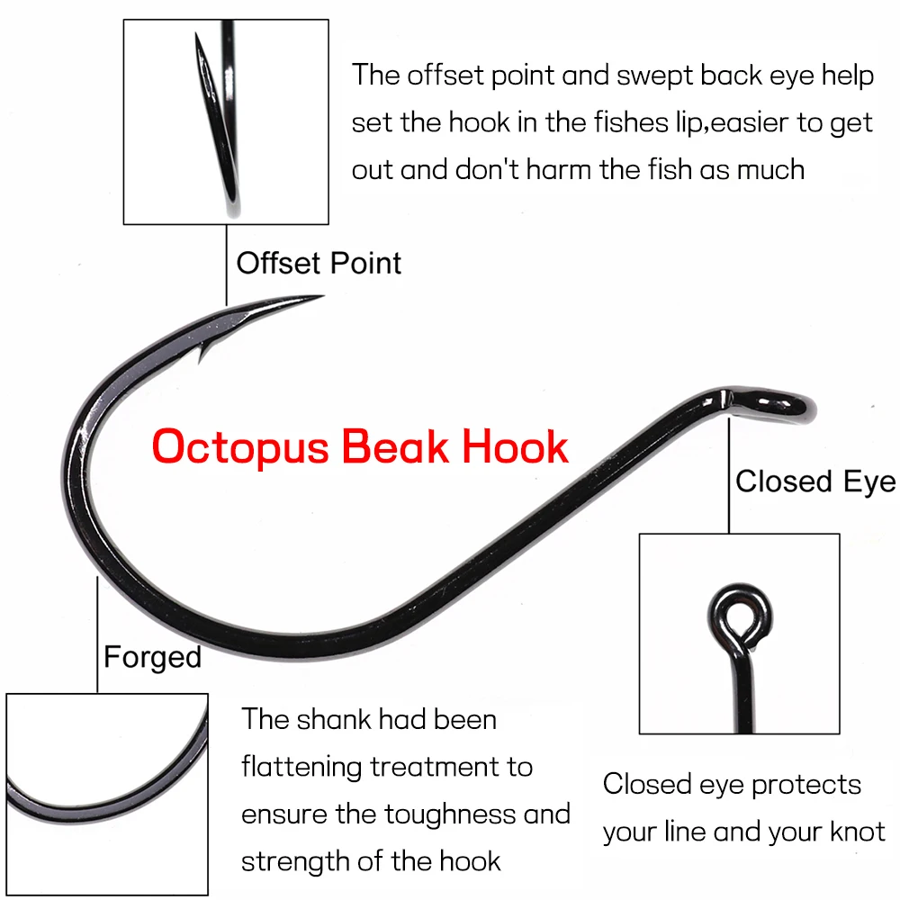 Bimoo 20pcs Offset Octopus Beak Hook High Carbon Steel Black Nickel Sea Fishing Hook 4/0 5/0 6/0 7/0 8/0