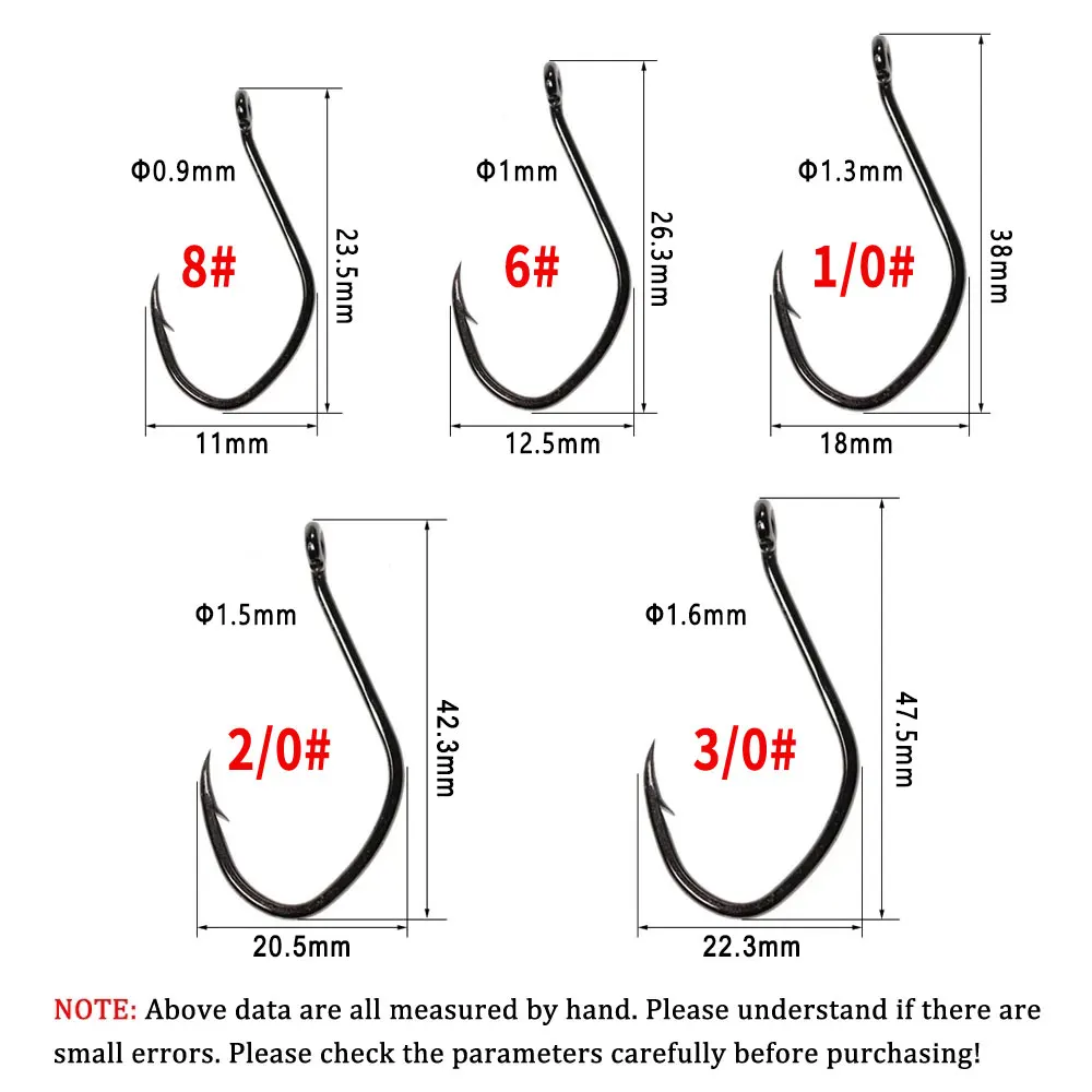 Bimoo 20 Uds anzuelos de pesca de bagre afilados anzuelo de bagre de níquel negro con púas de acero de alto carbono tamaño 8/0 6/0 4/0 3/0 1/0 6 8