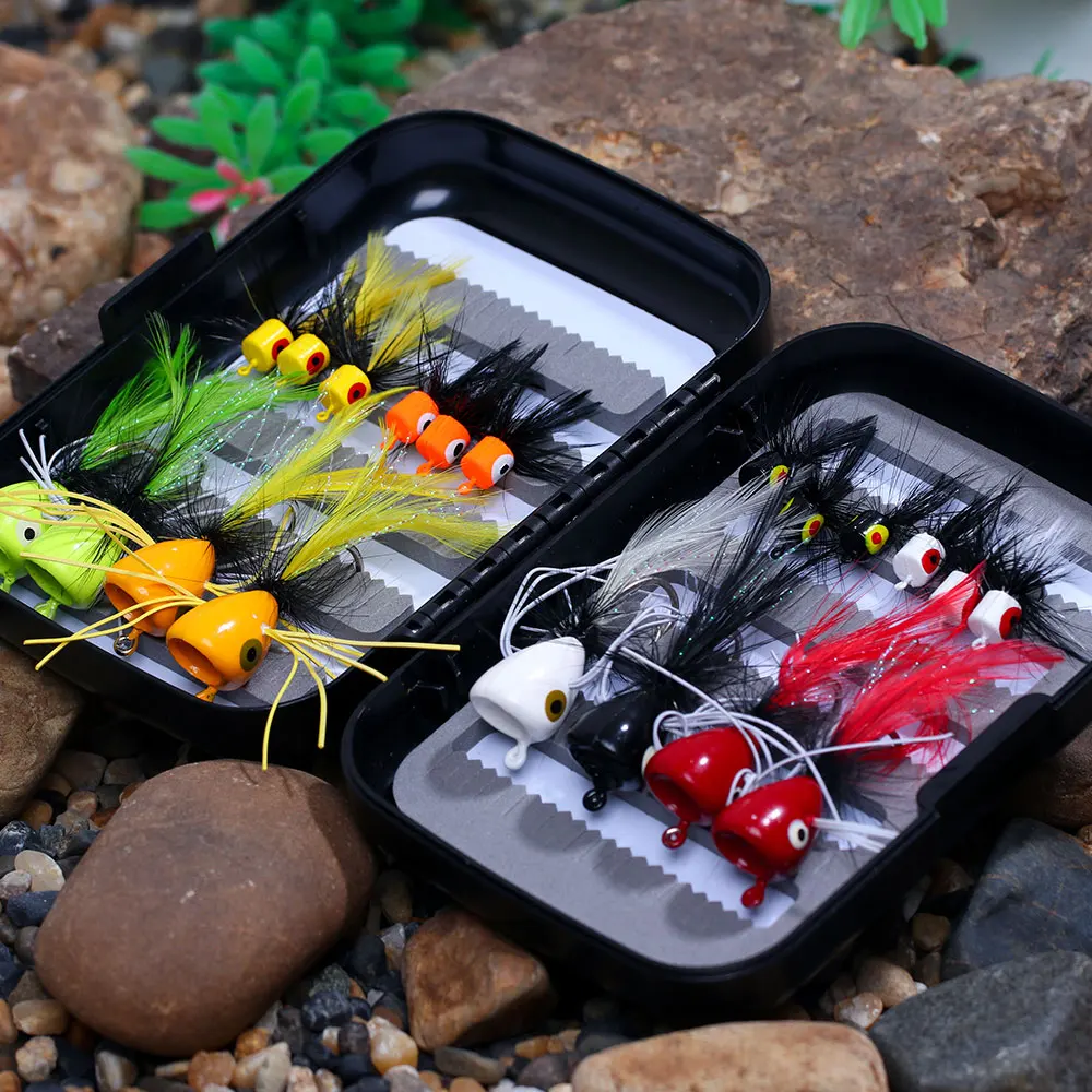 20 unids/caja topwater pesca con mosca poppers flotantes moscas secas