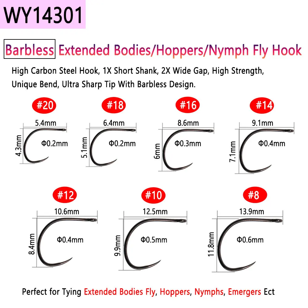 WY14301 Cuerpos extendidos sin púas/Hoppers/Nymph Fly Hook