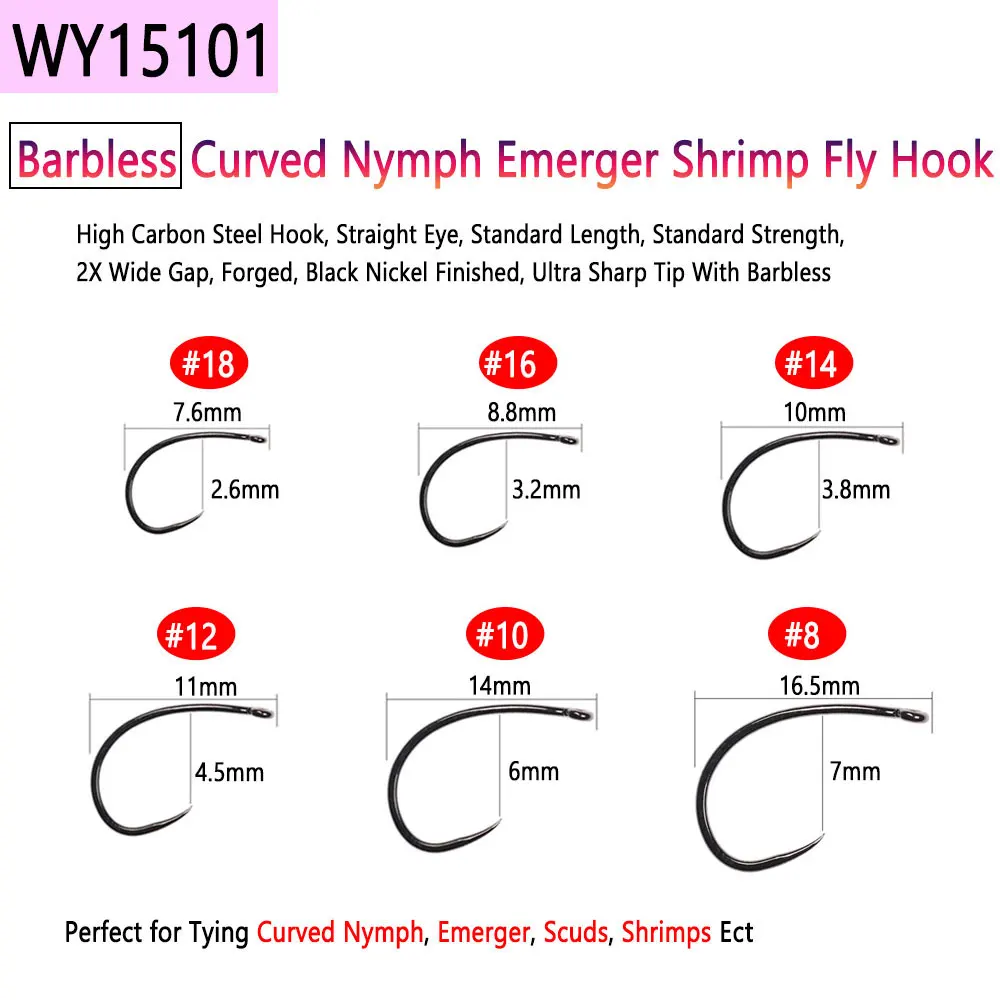 WY15001 Gancho Emeger de ninfa curvada sin púas