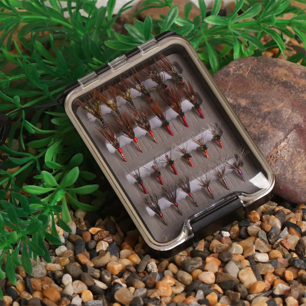 Bimoo 24 unids/caja#12#14 mezcla de moscas Tenkara con caja impermeable anzuelo de púas Tenkara pesca mosca trucha Grayliing Señuelos de pesca cebo