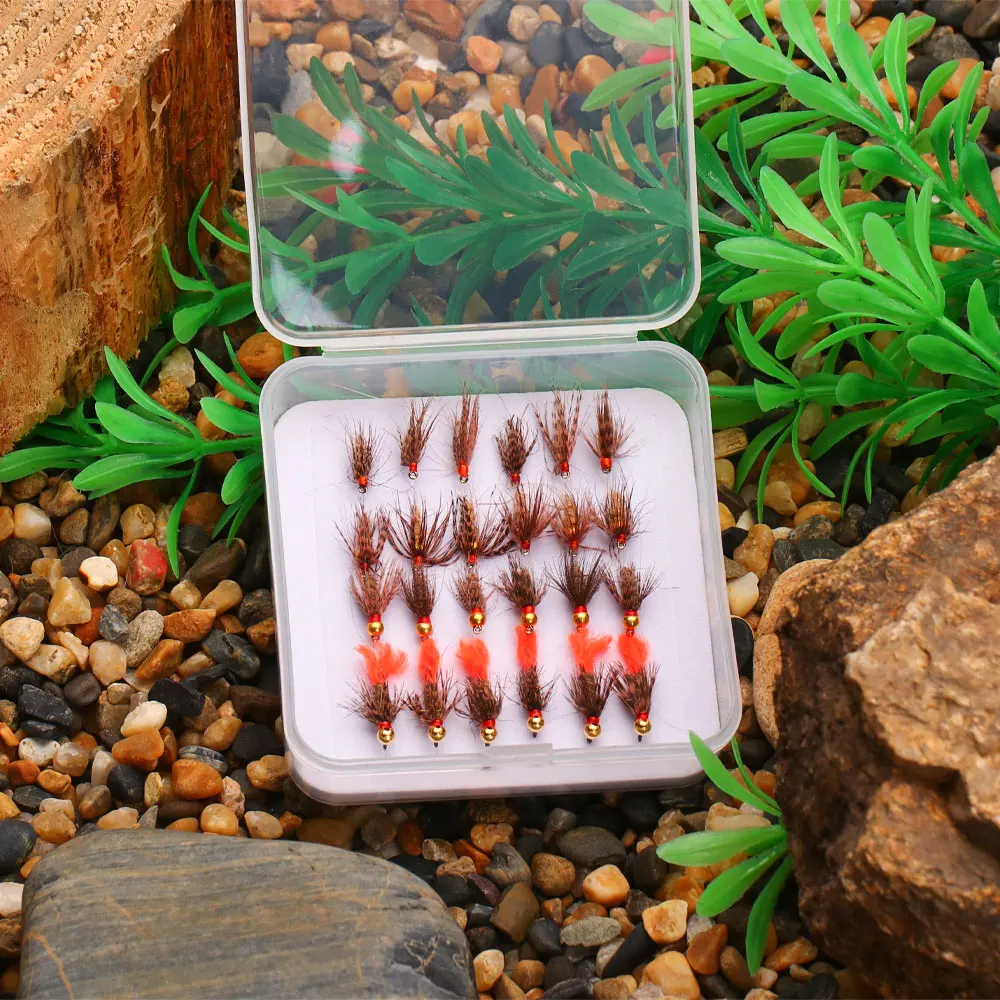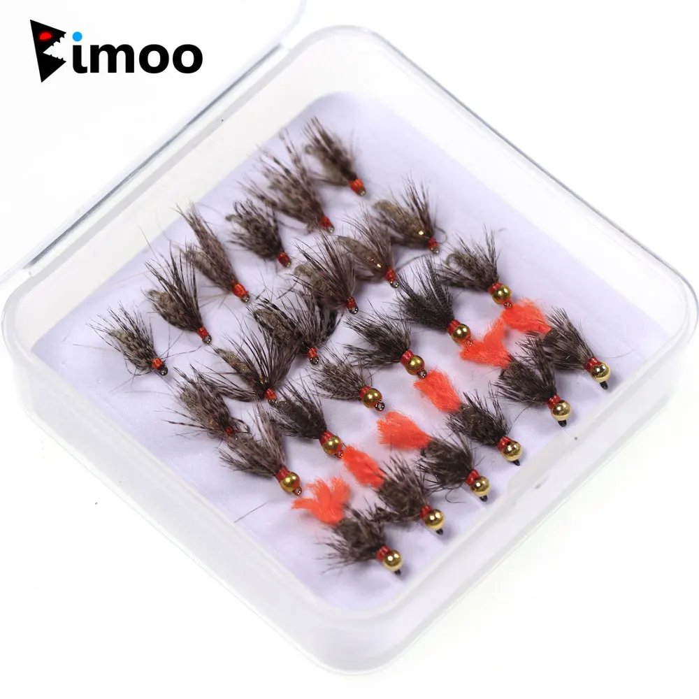 Bimoo 24 unids/caja cabeza de cuentas de latón cabeza de cuentas de tungsteno plantilla ninfa mosca hundimiento rápido ninfa húmeda para trucha lubina percha Señuelos de pesca cebos