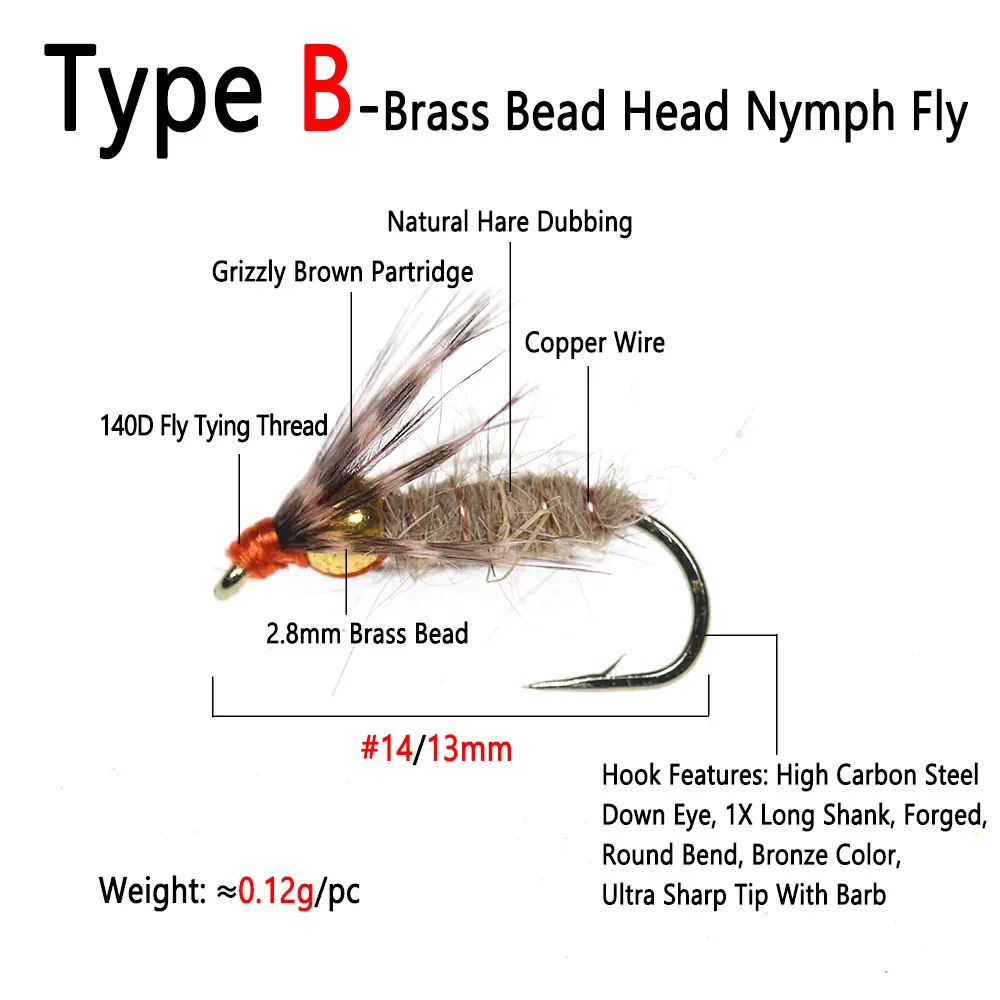 Mosca de ninfa con cabeza de cuentas de latón tipo B y tipo C