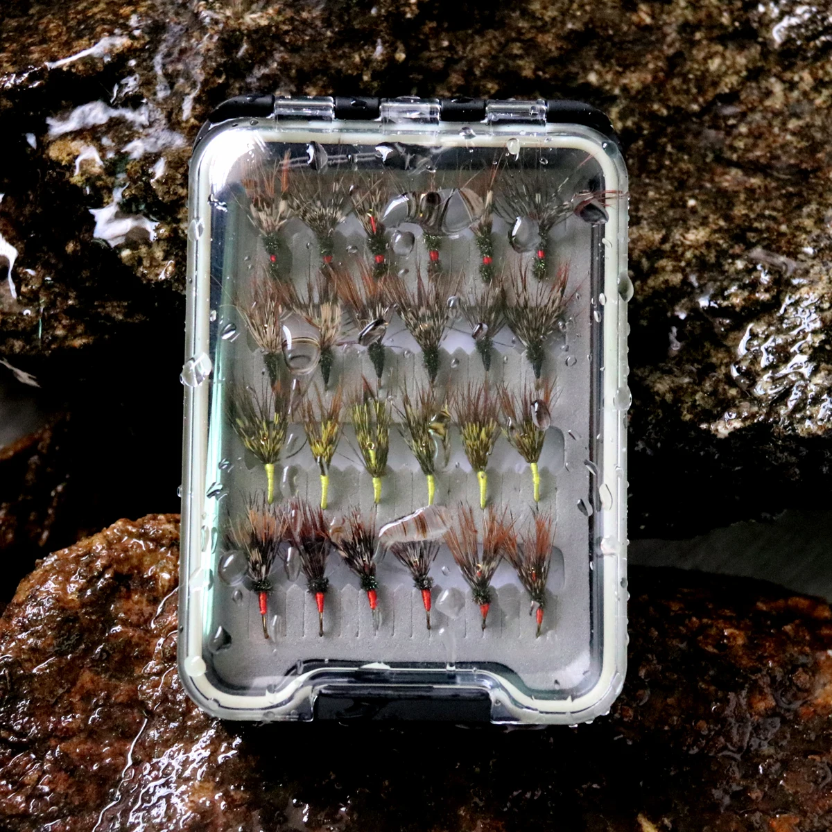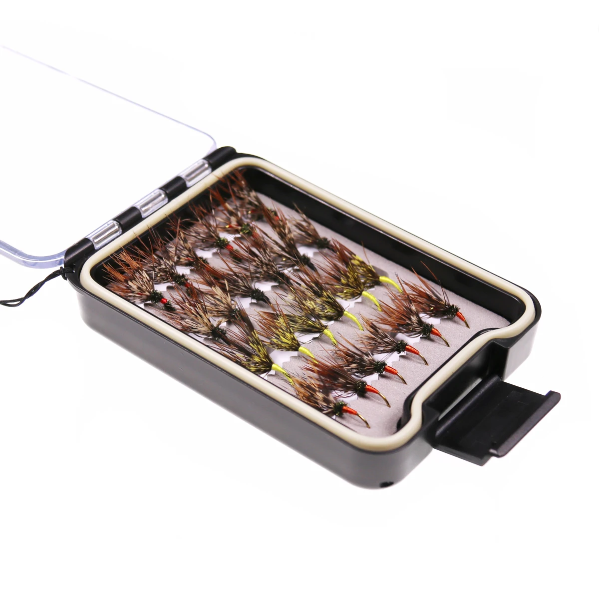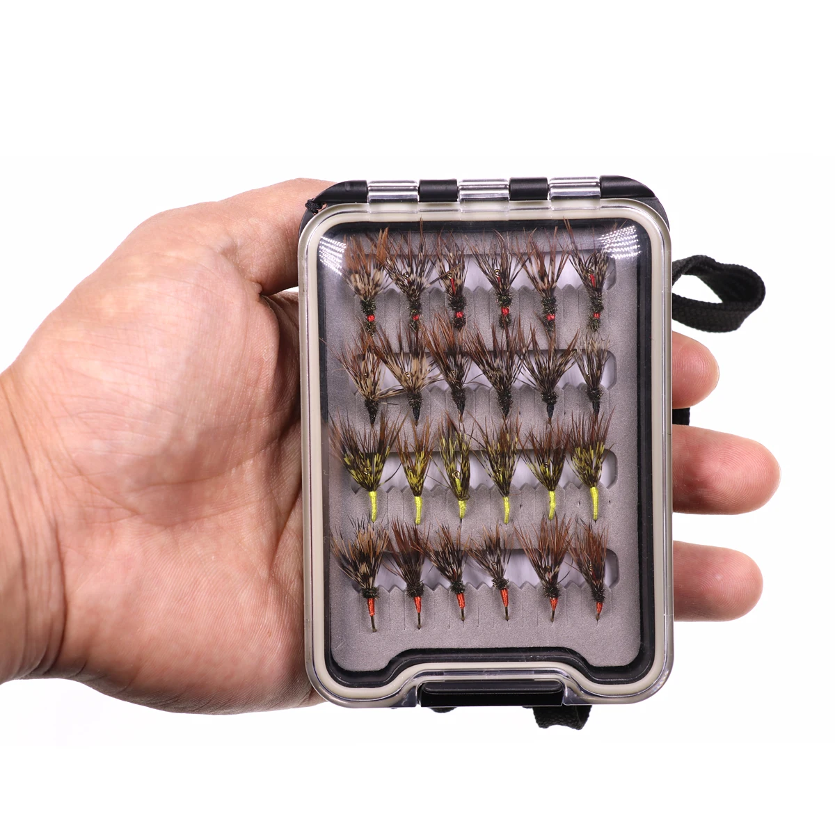 Bimoo 24 unids/caja moscas Tenkara en caja de moscas impermeable tamaño 12 anzuelo de púas mosca de pesca Tenkara