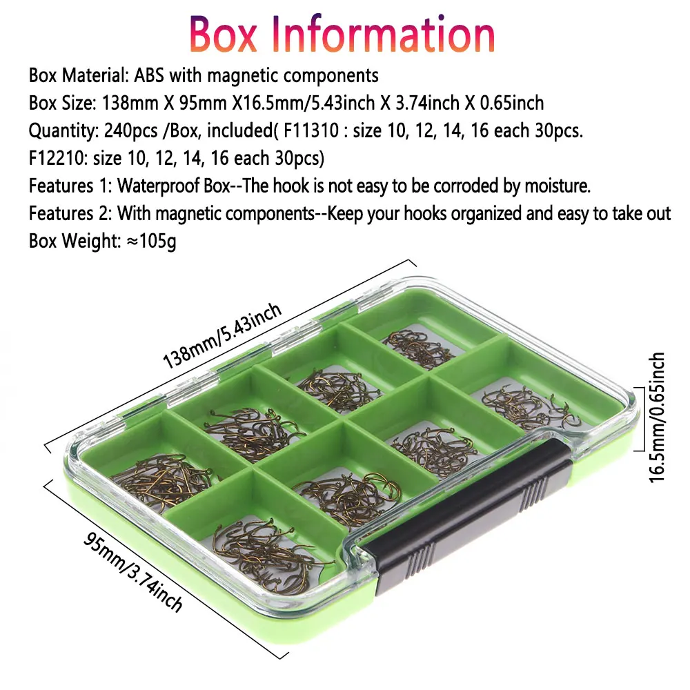 Cantidad: 240 unidades/caja, incluidas (F11310: tamaño 10, 12, 14, 16 cada 30 unidades; F12210: tamaño 10, 12, 14, 16 cada 30 unidades)