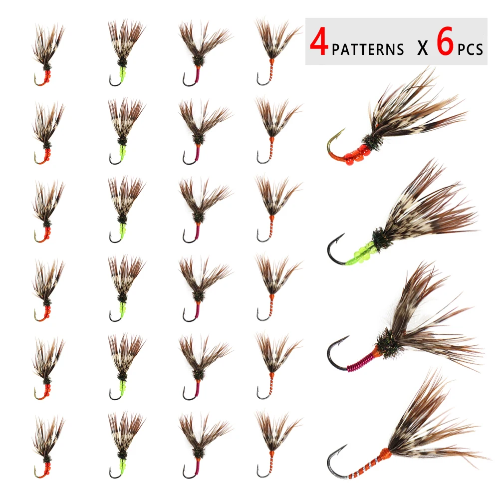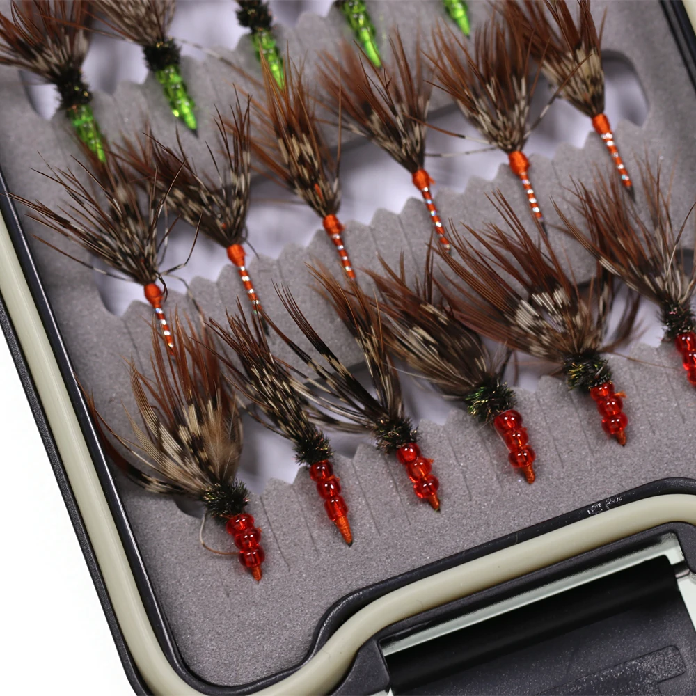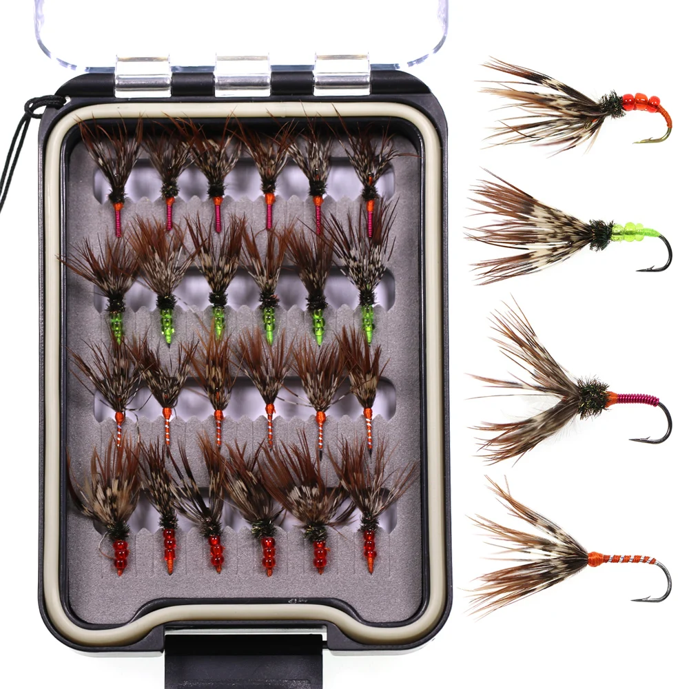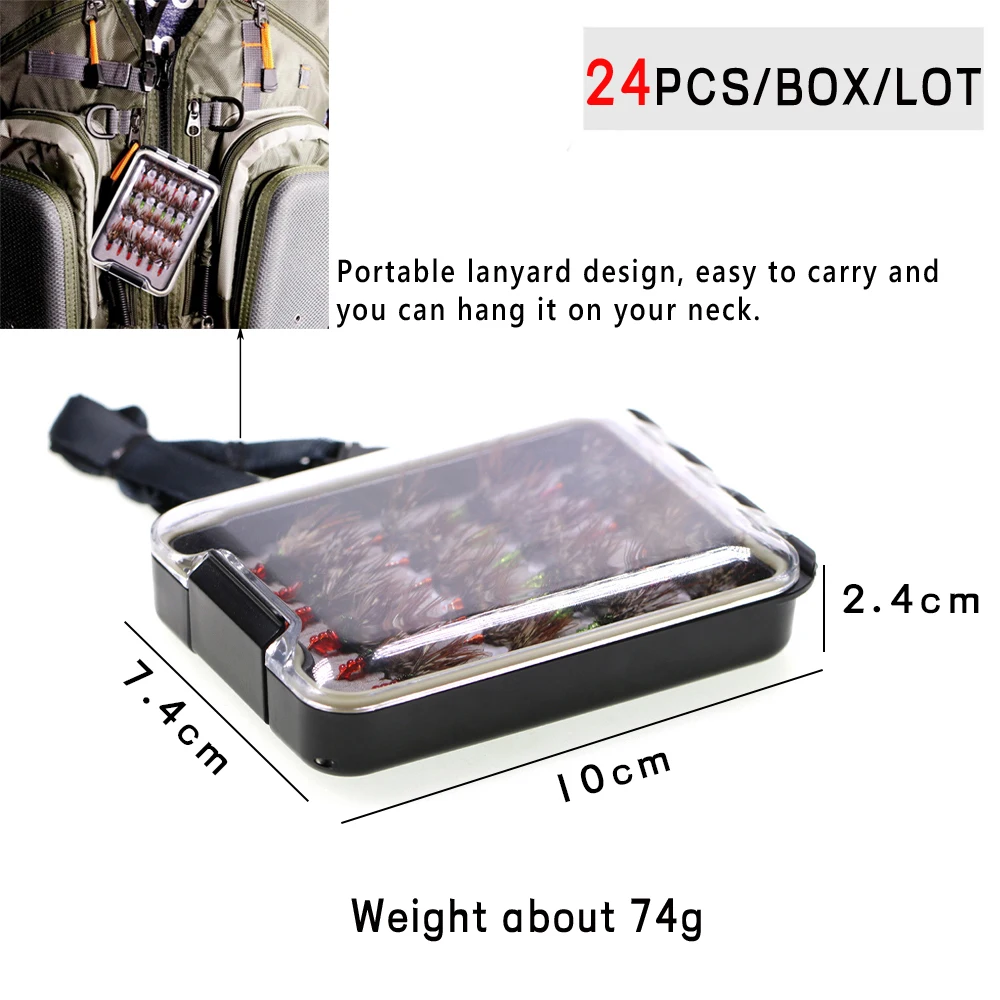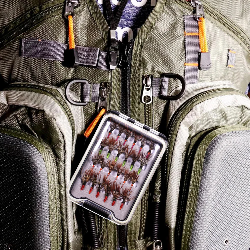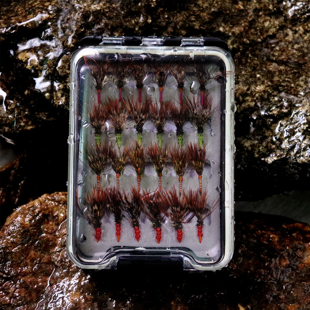 Bimoo 24PCS #12 Tenkara Flies Kebari Trout Steelhead Grayling Fishing Dry Fly Floating Bait Lures with Waterproof Fly Box Case