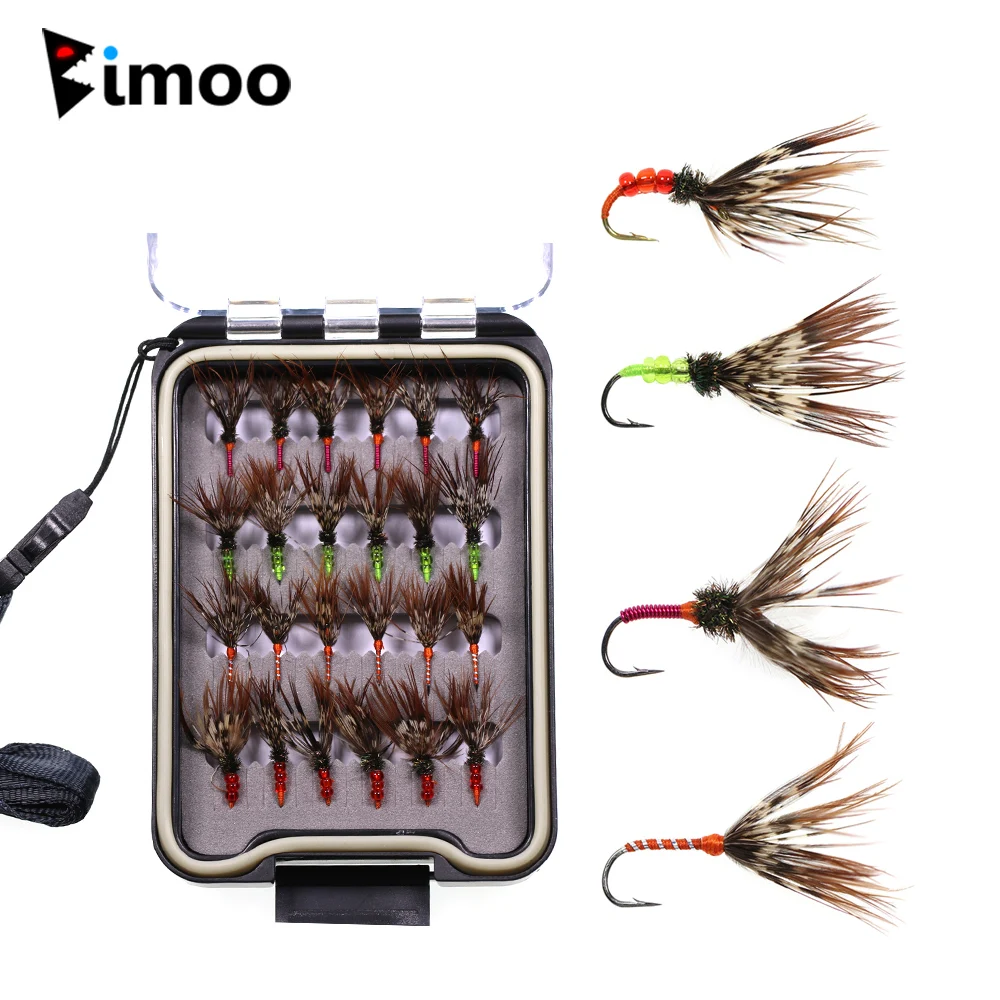 Bimoo 24PCS #12 Tenkara Flies Kebari Trout Steelhead Grayling Fishing Dry Fly Floating Bait Lures with Waterproof Fly Box Case