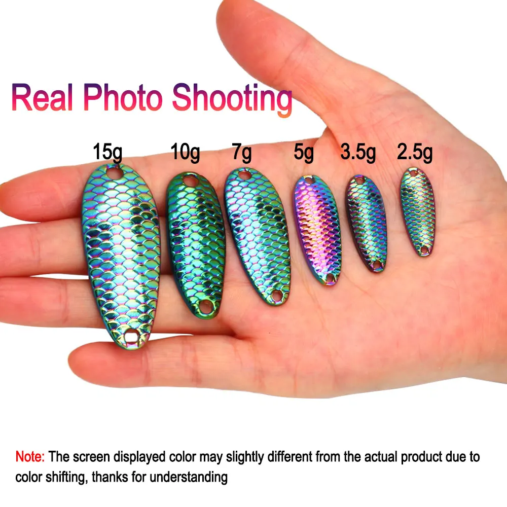 Bimoo 2.5g 3.5g 5g 7g 10g 15g pesca cuchara de Metal señuelos escamas de pescado cebo duro señuelo de pesca de mar para trucha Lucio perca lubina salmón