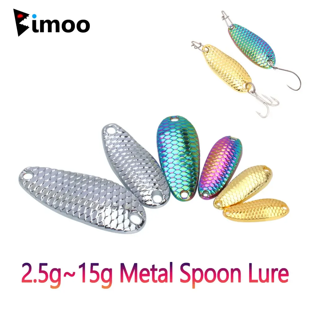 Bimoo 2.5g 3.5g 5g 7g 10g 15g pesca cuchara de Metal señuelos escamas de pescado cebo duro señuelo de pesca de mar para trucha Lucio perca lubina salmón