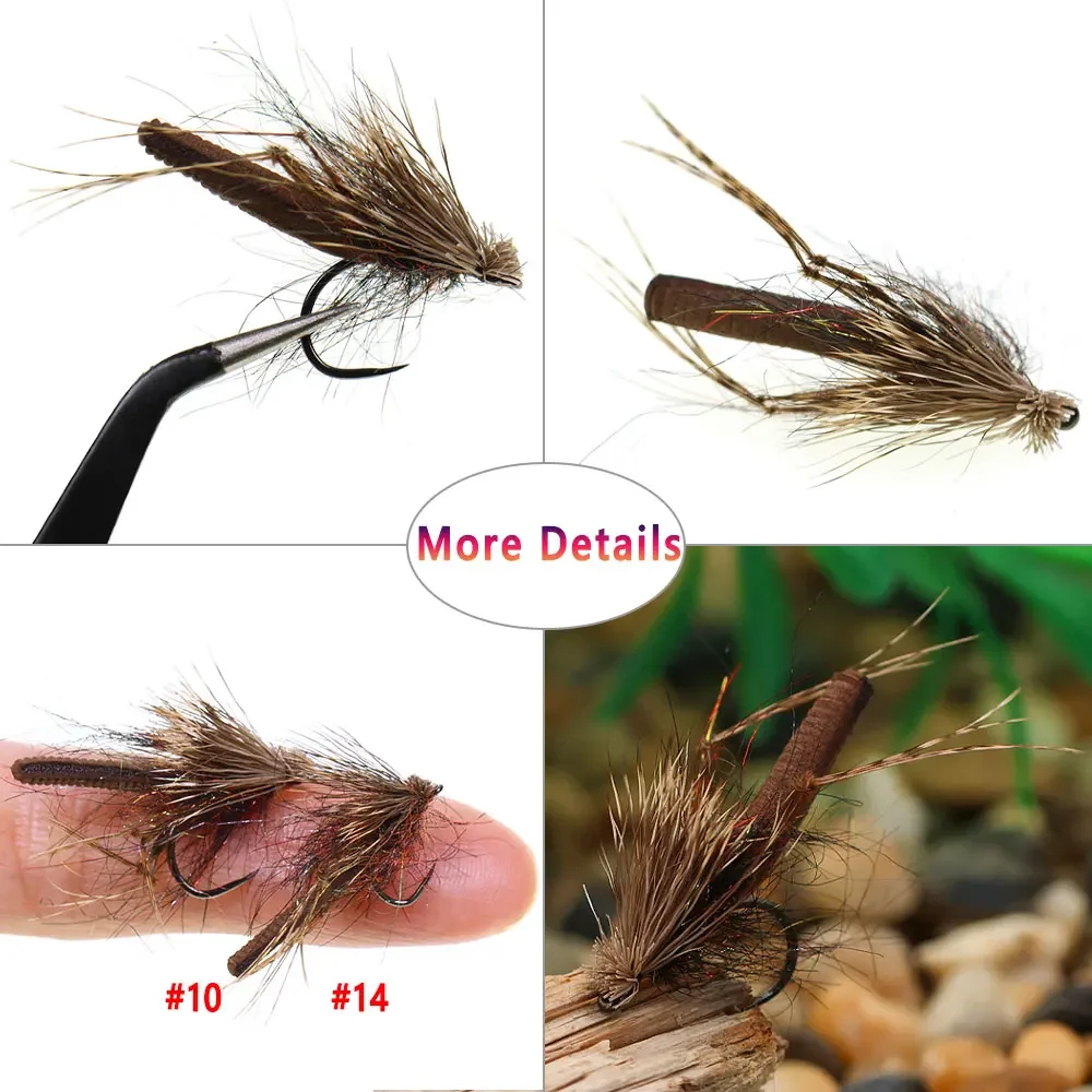 Bimoo 3 piezas#10#12#14 espuma cuerpo pelo de alce Caddisfly sin púas flotante mosca seca Mayfly trucha lubina gris panfish Señuelos de pesca