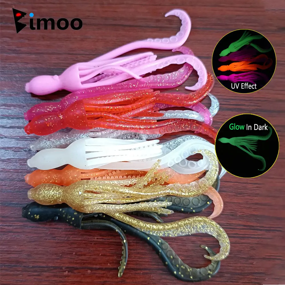 Bimoo 3 piezas 3.9g brillo UV suave pulpo calamar cebo flotante Material TPR Pesca Wobbler aparejos de pesca agua salada snapper señuelo de pesca