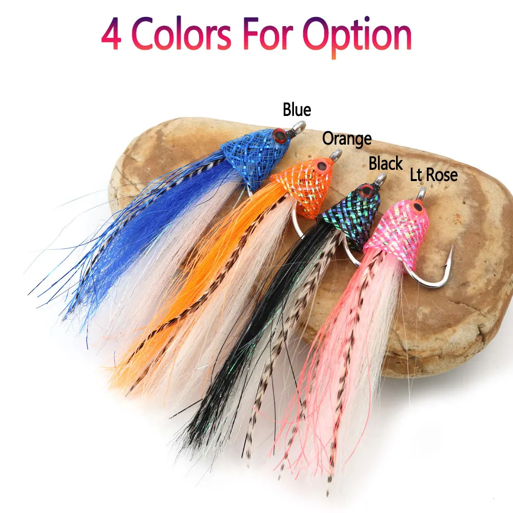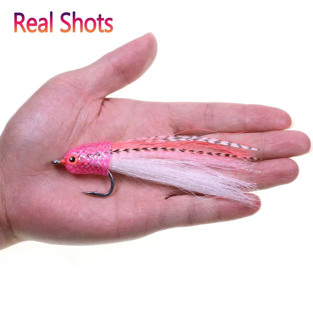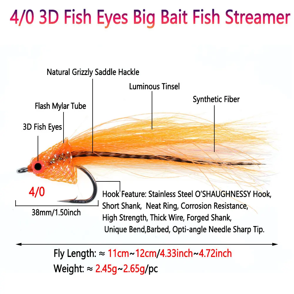 Bimoo 4/0 2pcs 4.33inch 3D Fish Eyes Big Bait Fish Streamer Stainless Steel Minnow Streamer Trout Pike Musky Sea Fishing Lures