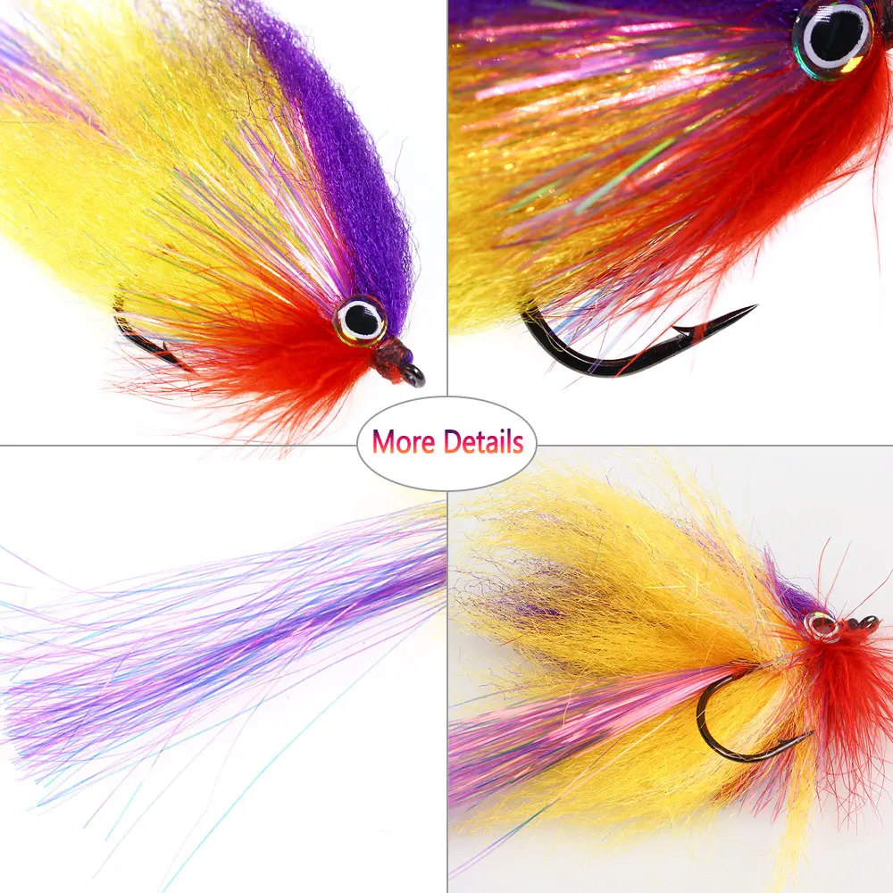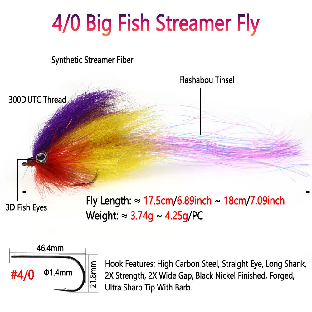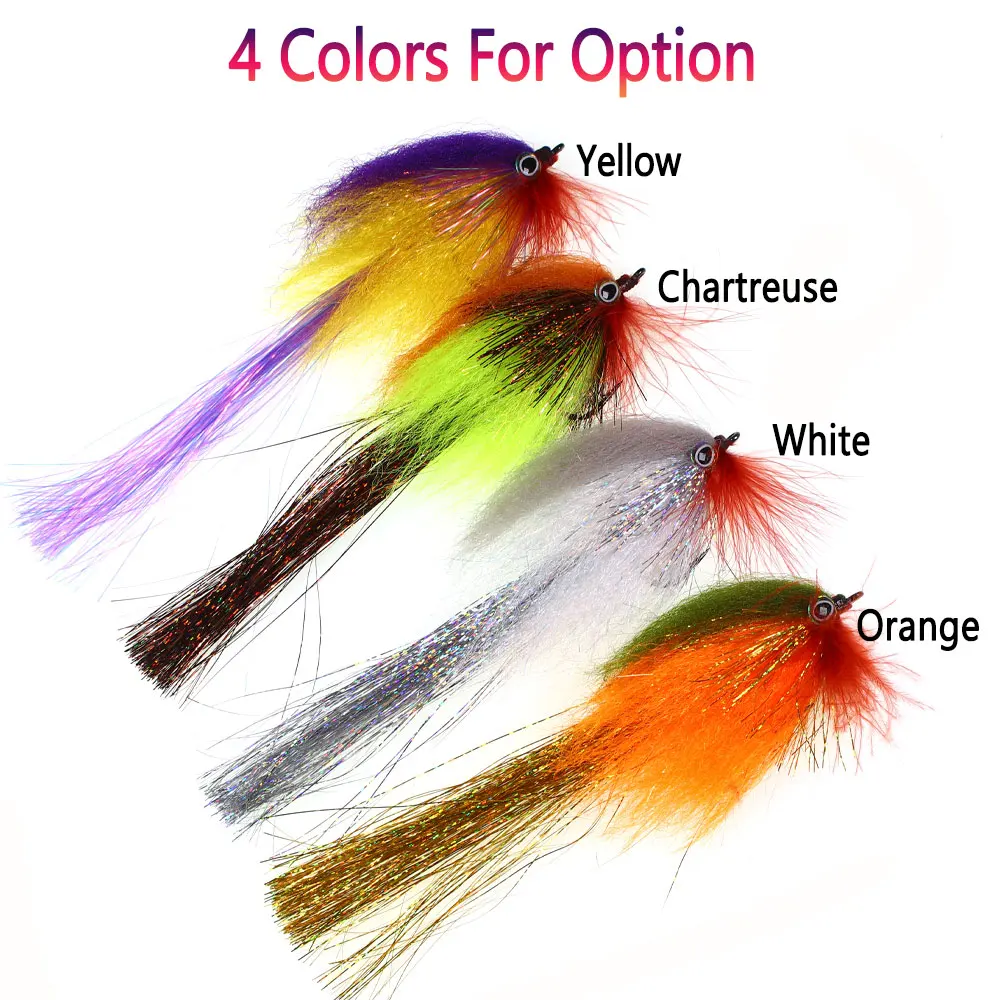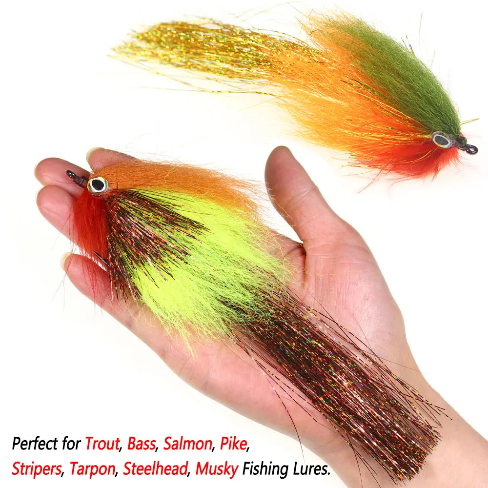 Bimoo#4/0 6,89 pulgadas ~ 7,09 pulgadas peces grandes Streamer mosca Flashabou oropel cola cebo pez mosca trucha Lucio lubina almizco señuelo de pesca de agua salada