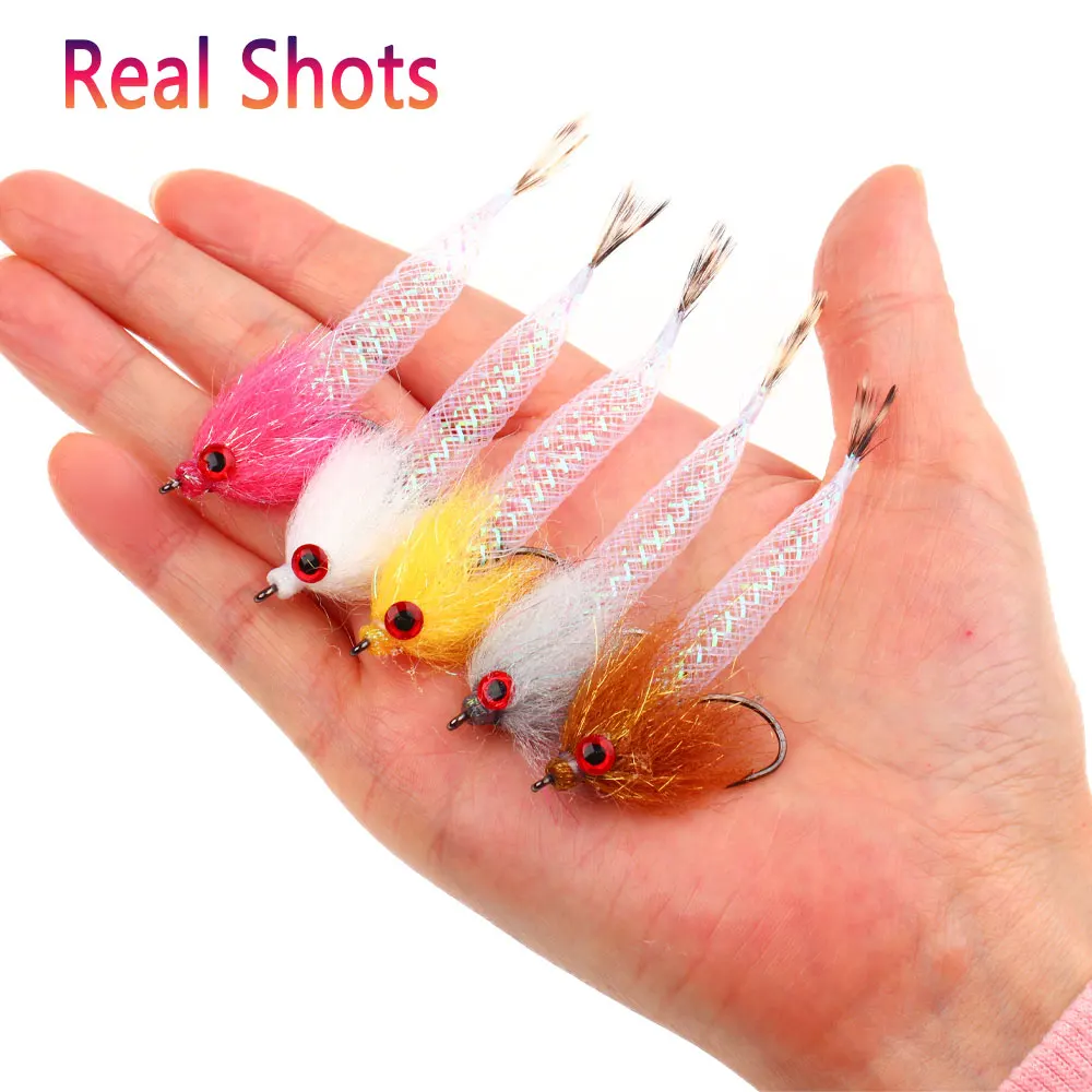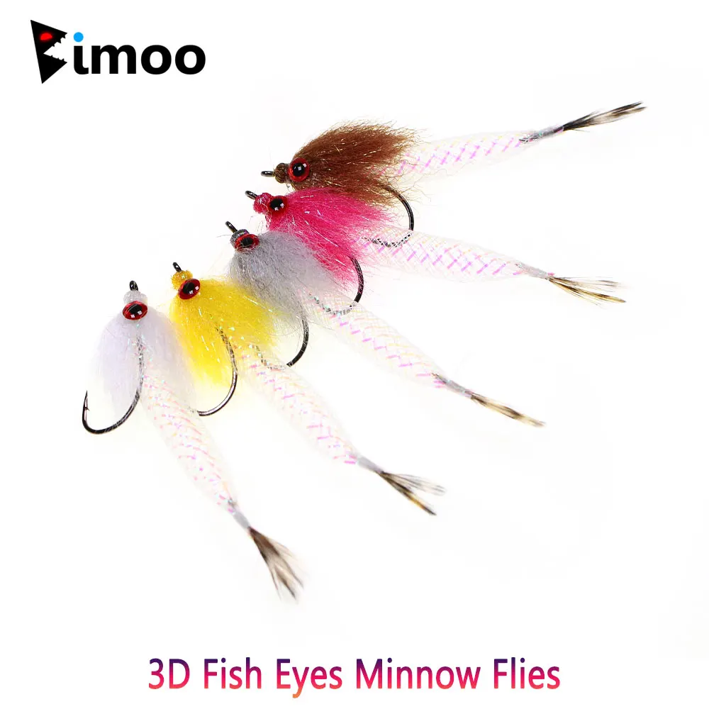 Bimoo#4 3-5 uds 3.15 pulgadas de largo 3D ojos de pez Mylar Minnow moscas Flash tubo cebo pez serpentina mosca lubina trucha almón Señuelos de pesca