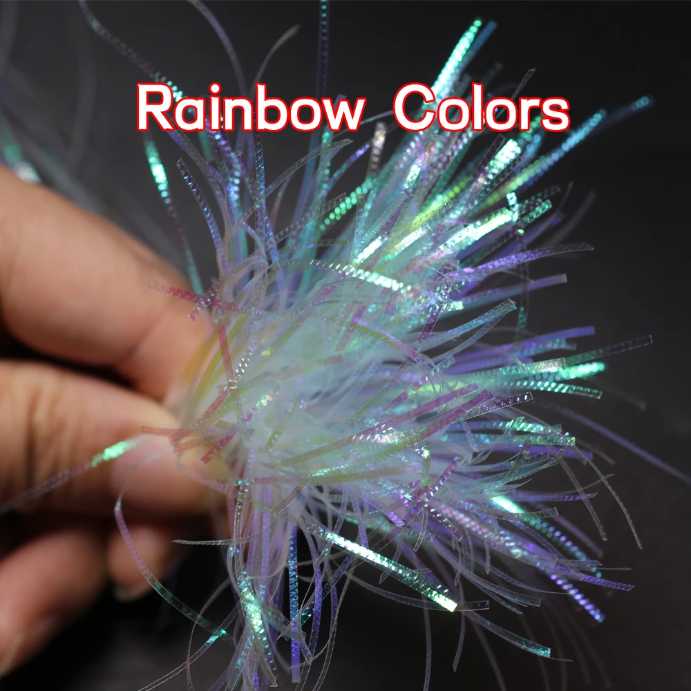 Bimoo 4 paquetes de hebras de deslizamiento corrugadas arcoíris de 1 mm y 9,8 pulgadas que simulan escamas/titáculos de pescado Nuevo material iridiscente para atar moscas Flash