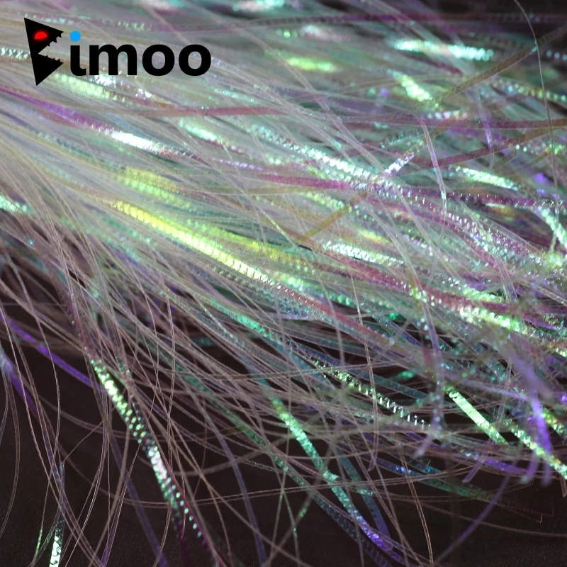 Características: Los filamentos de nailon envuelven firmemente cada hilo de Flashabou, los hilos están corrugados de modo que cuando refleja la luz simule las escamas de un pez.Excelente para alas, colas, nervaduras y material del cuerpo.