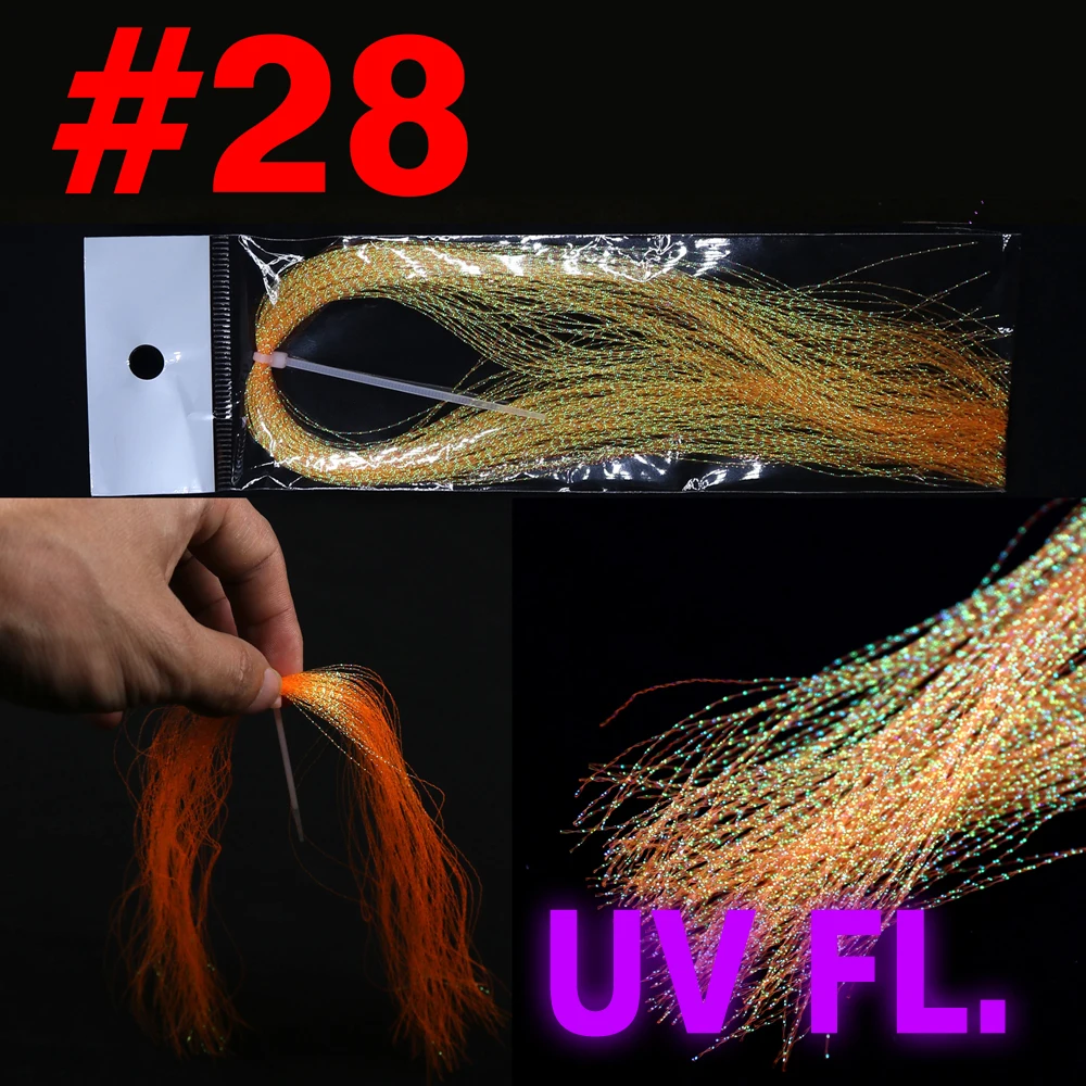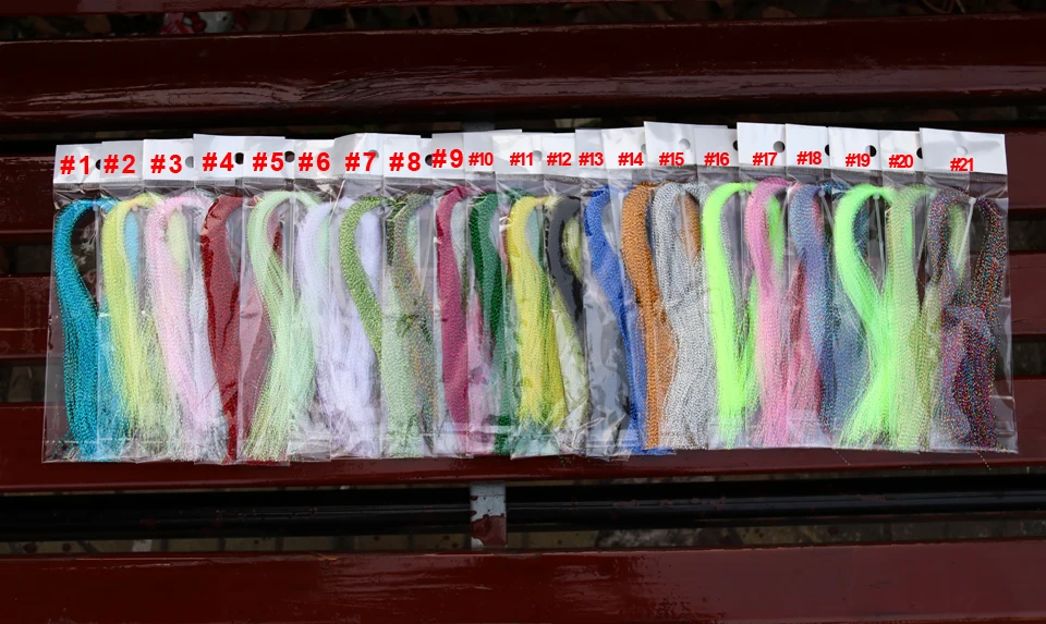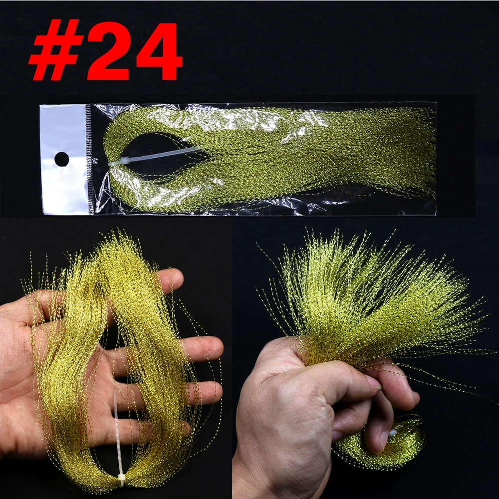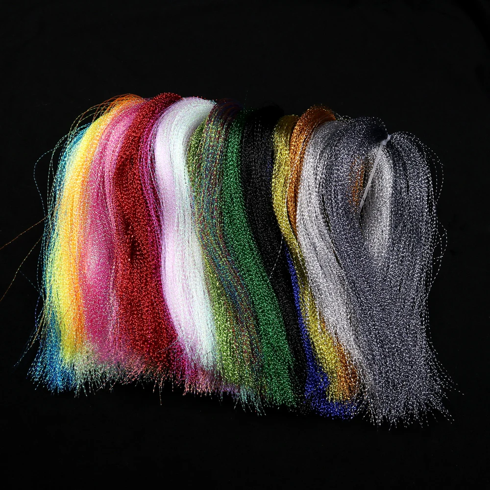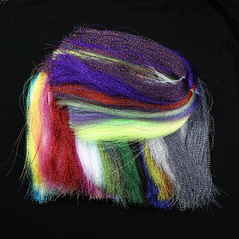 Bimoo 4 bolsas Flashabou oropel atado de moscas Flash de cristal para anzuelo de plantilla Material para hacer señuelos hebras de cristal Oro Plata Arco Iris Verde