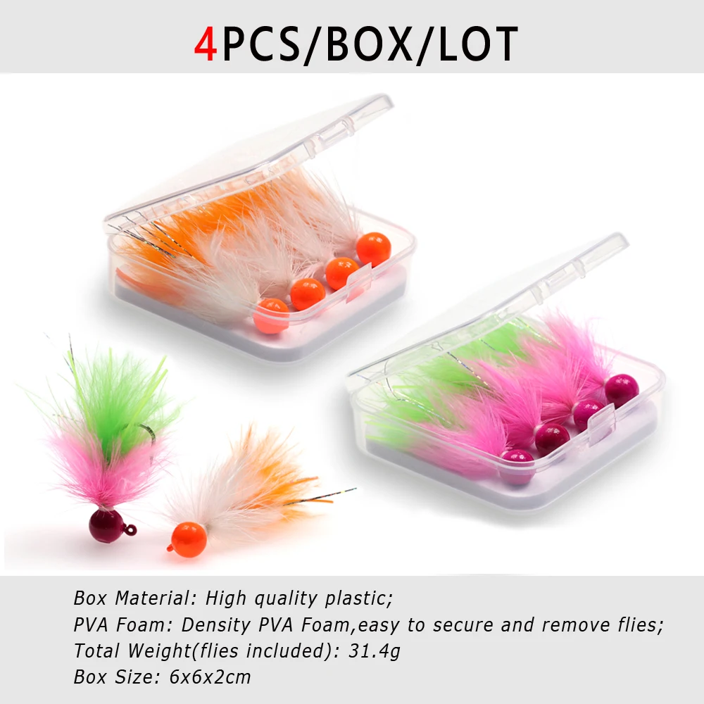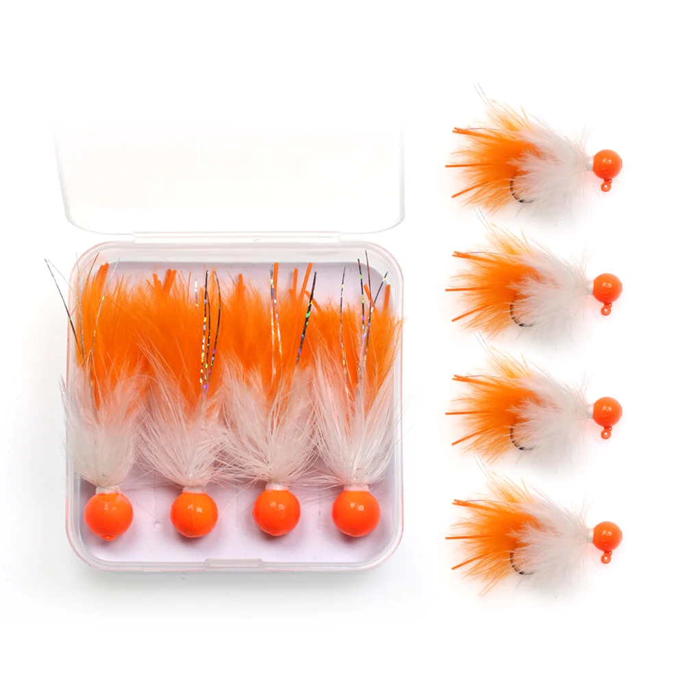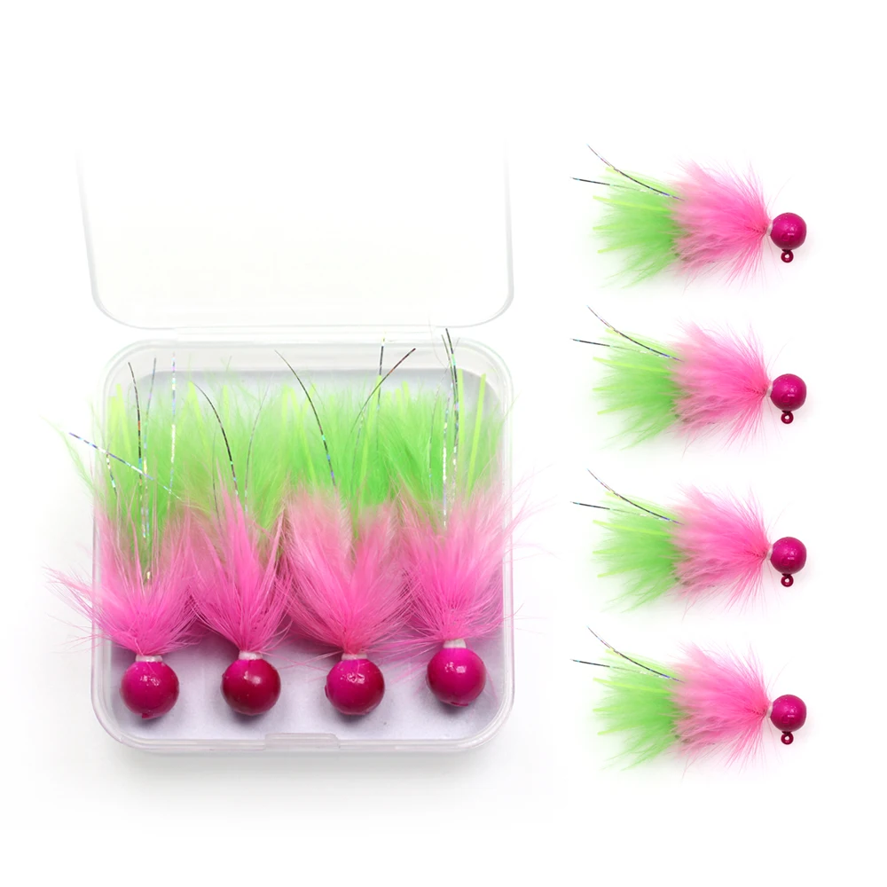 Bimoo 4 Uds 3g 5g fluorescente Marabou Crappie Jig Head señuelo de pesca Streamer mosca lubina trucha Lucio Muskie hielo Jig señuelo de pesca