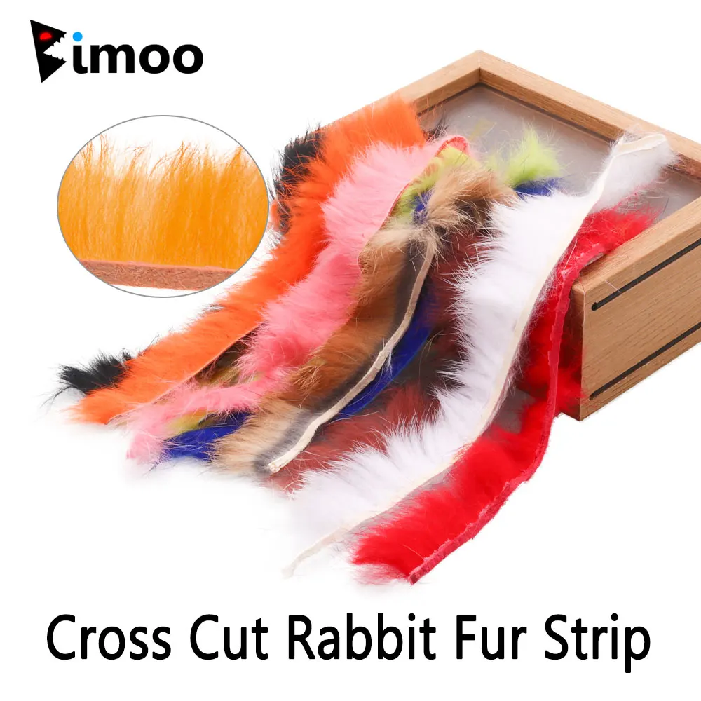 Bimoo 4 Uds. Tira de piel de conejo de corte cruzado, tiras Zonker de pelo de Hare, Material para atado de moscas, serpentinas de cabeza de acero, plantilla Coho Twitching