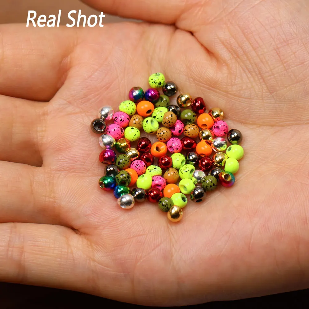 Bimoo 40 Uds 2,3 ~ 3,8mm cuentas de plantilla desplazadas de hundimiento rápido forma de gota Jig Off cuentas Material de atado de mosca para jig húmedo Ninfa camarones Scud