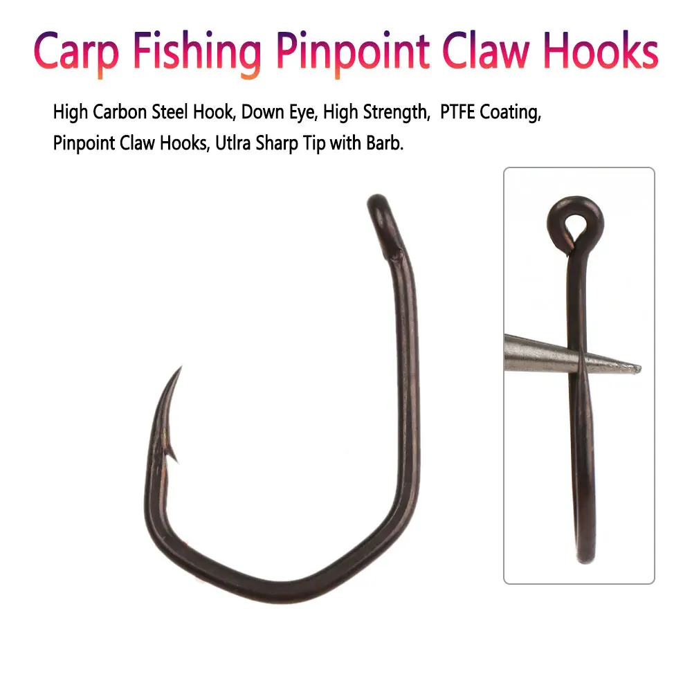 Bimoo 40 Uds. Anzuelos de garra puntual para pesca de carpa de acero rico en carbono, anzuelo de pez con revestimiento de PTFE, anzuelo de pesca de carpa europea, aparejos de señuelo
