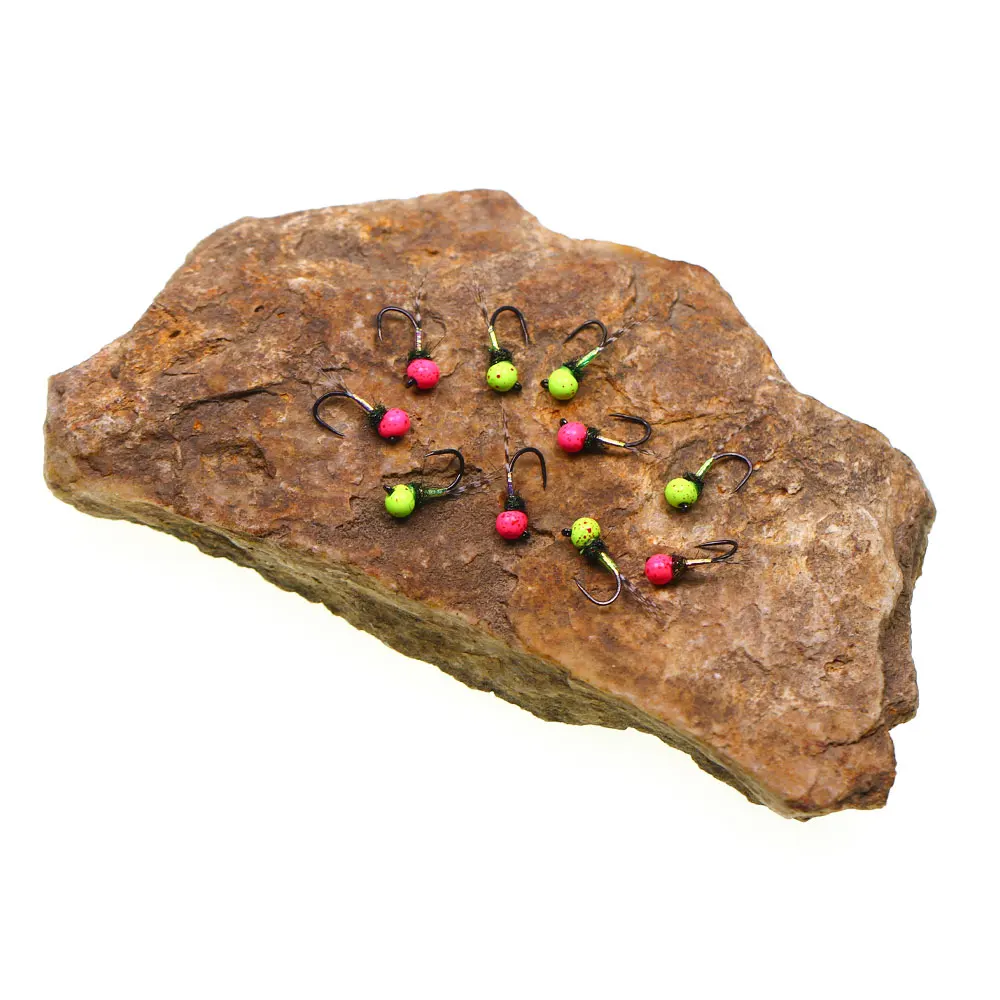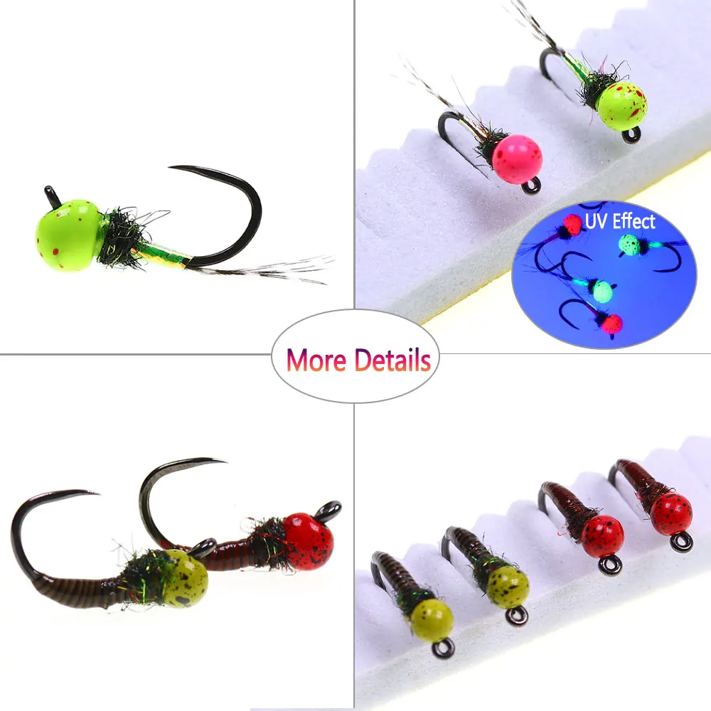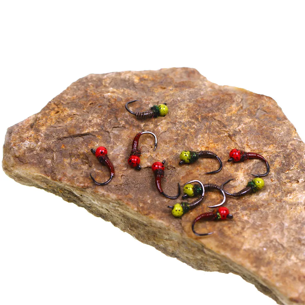 La mosca de ninfa húmeda con cuentas de tungsteno moleteadas es un patrón de ninfa ponderado altamente efectivo diseñado para hundirse rápidamente e imitar insectos acuáticos como moscas, caddisflies o moscas de piedra.Estas ninfas se hunden rápidamente y cuentan con cuentas de tungsteno desplazadas moluminadas.La cuenta de tungsteno molido brinda una perspectiva más natural a los insectos. Si bien se usan comúnmente como moscas de ninfas de estilo europeo, estos patrones también son muy efectivos bajo indicadores de golpe o moscas secas.Tienen a deslizarse sobre las rocas y minimizar los enganches aunque son pesados y entren en contacto frecuente con el fondo.También es mucho más probable que enganche la trucha en el labio superior, dando al pescador más control y una mayor capacidad para pescar la trucha.