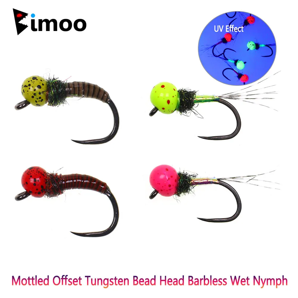 Bimoo 4 piezas#12#14#18 cabeza de cuentas de tungsteno offset burbujeante ninfa húmeda fregadero rápido Perdigon Euro húmedo ninfa trucha Señuelos de pesca mosca