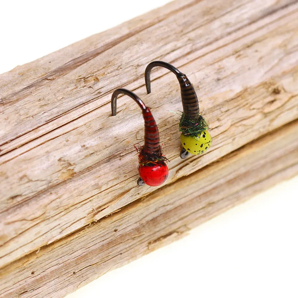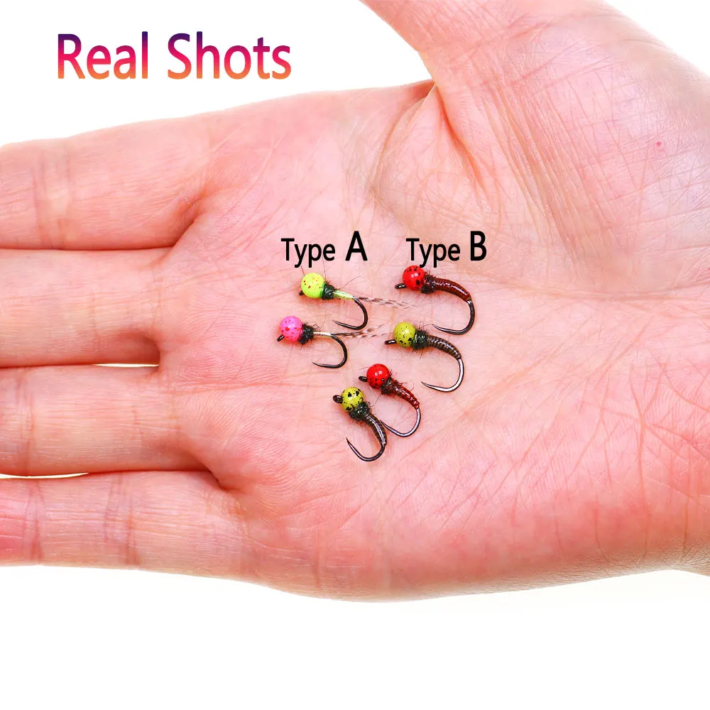 Cabeza de cuentas de tungsteno offset burbujeada, mosca ninfa húmeda sin púas, tipo A