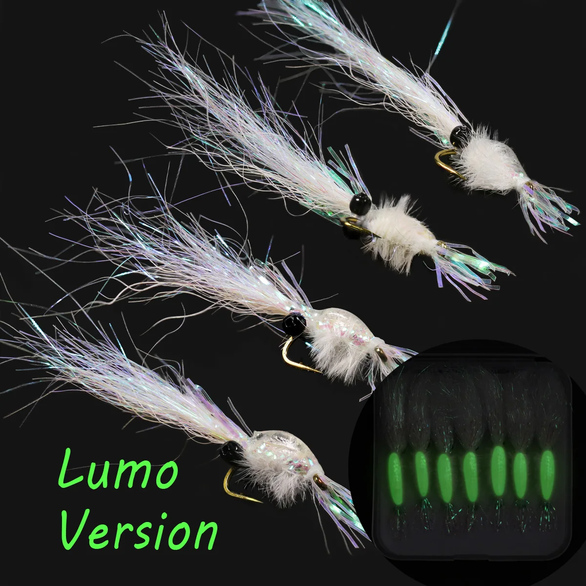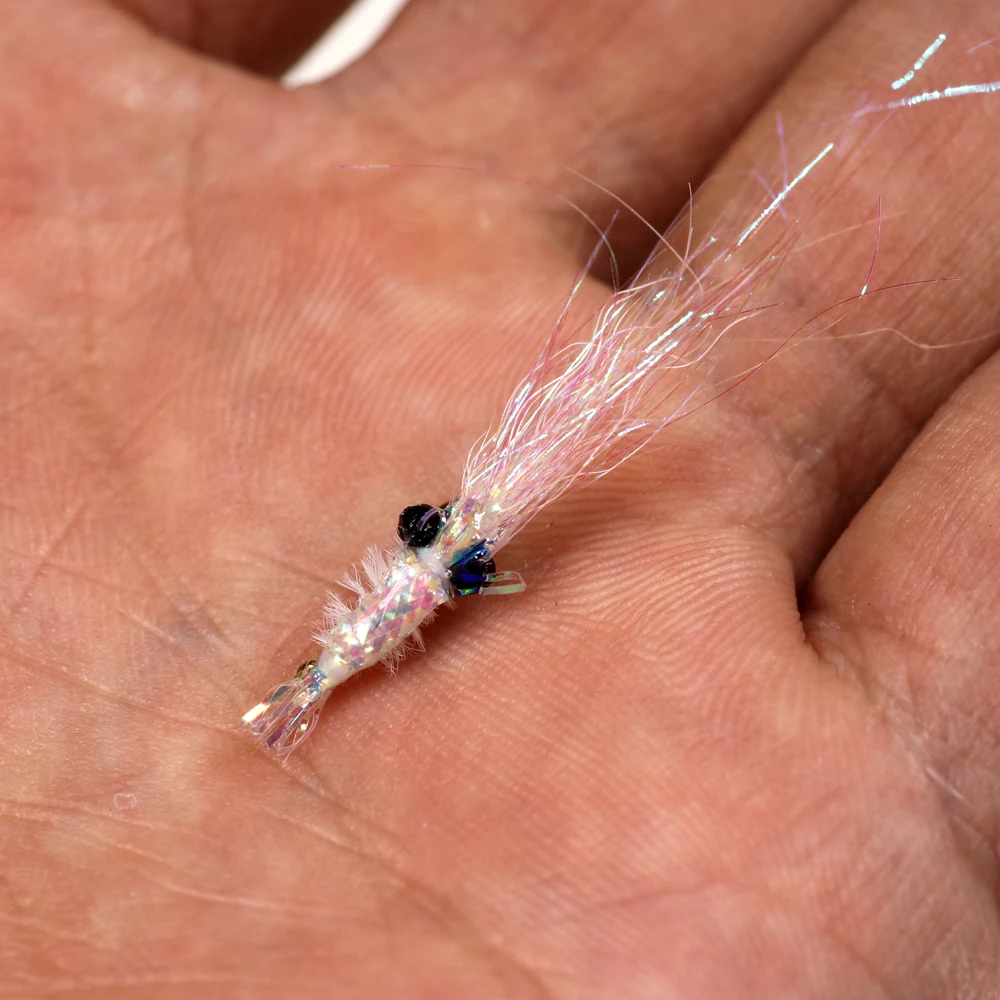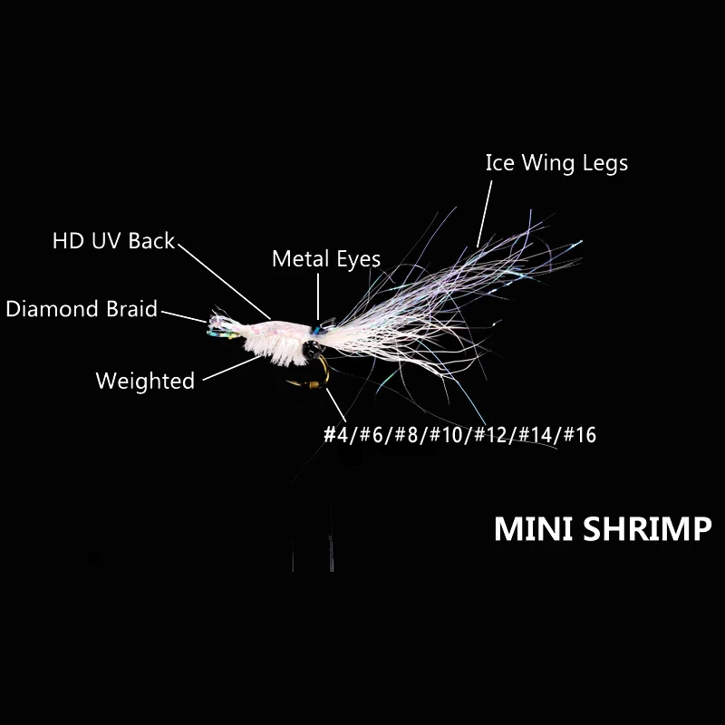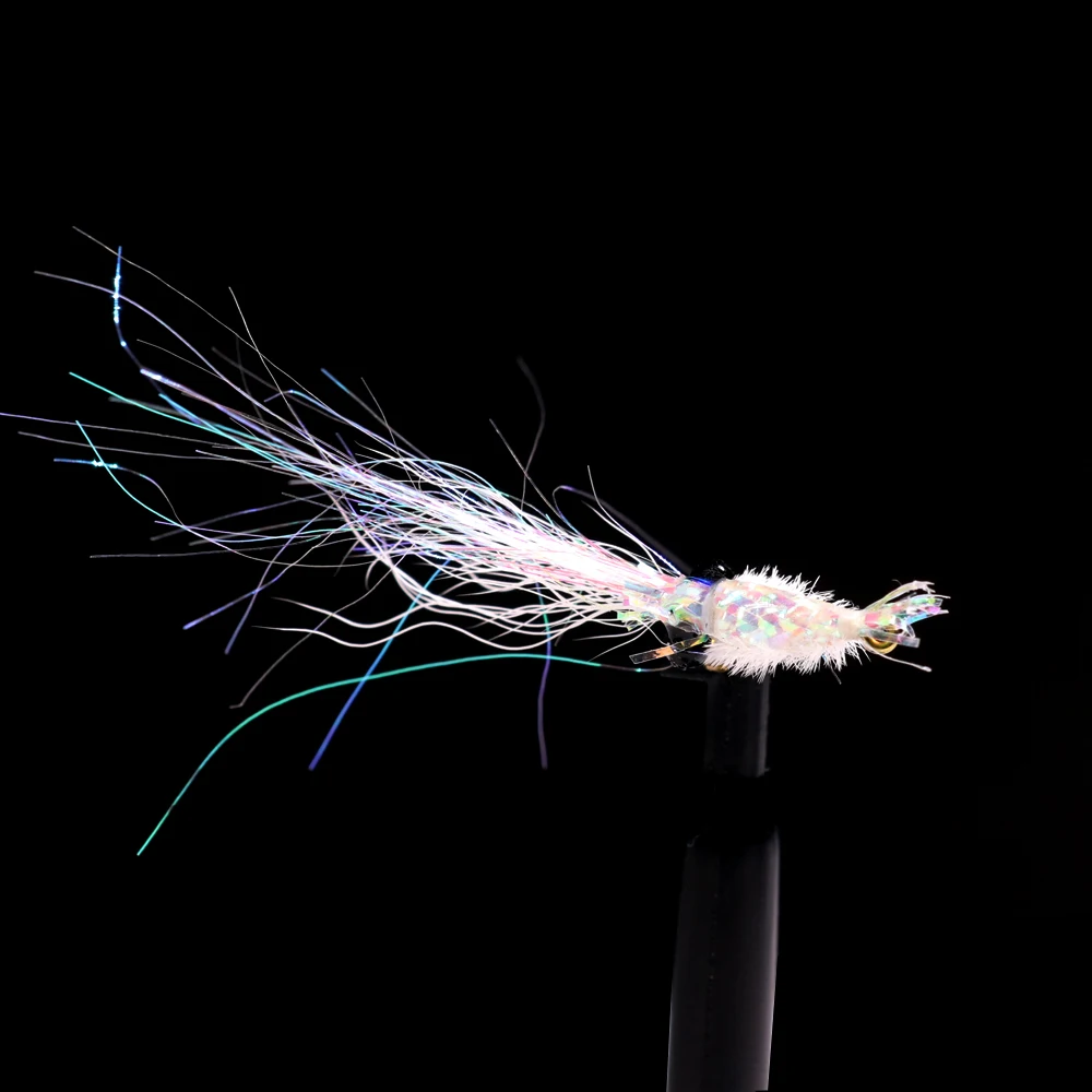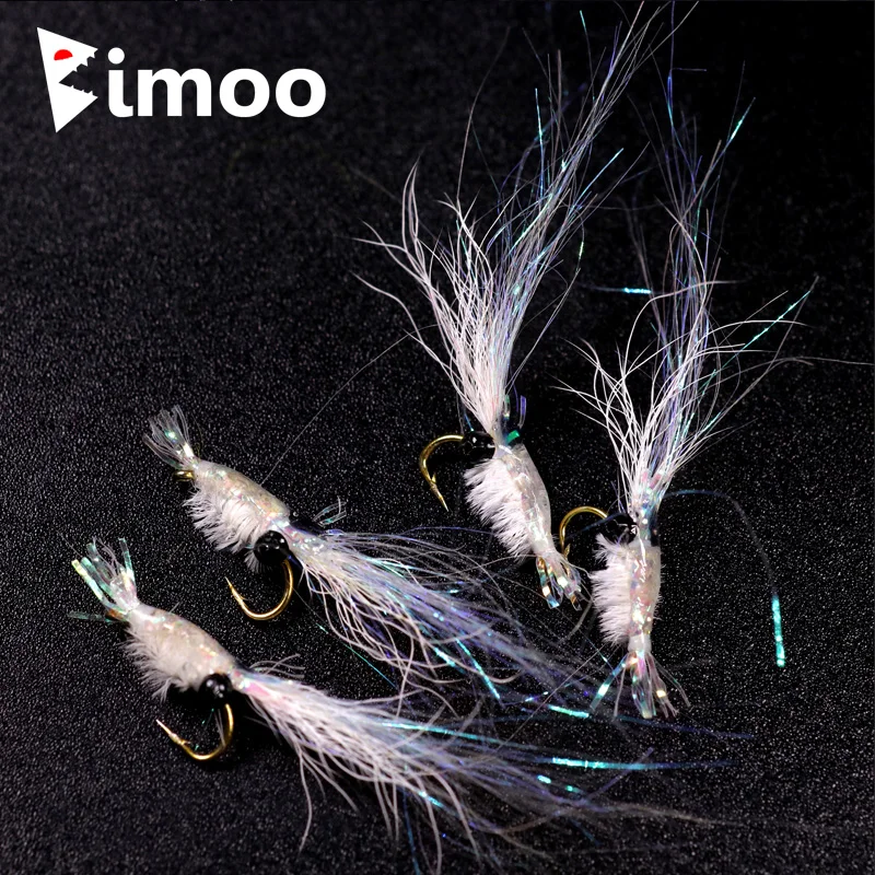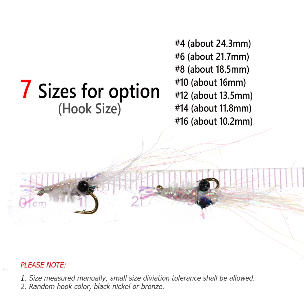 Bimoo 4PCS White #4~#16 Mini Shrimp Salt Fly Bass Steelhead Trout Salmon Flies Nymph Fly for Saltwater Freshwater Fly Fishing