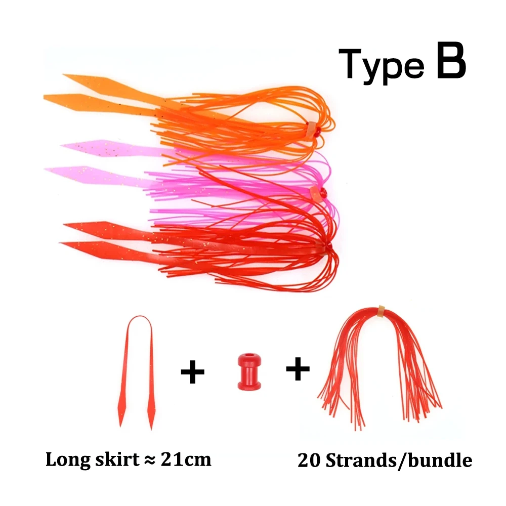 - Característica: Alta calidad, suave y más colorido.Según sus necesidades, puede agregar cabezas de plomo, ayudar a ganchos y sonajeros, etc.Utilizado principalmente para la producción de Buzzbait y Spinnerbait.Son muy prácticos y te traerán la diversión del bricolaje.