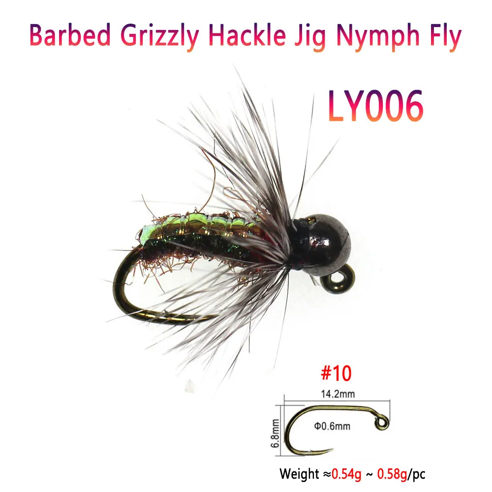 Estas ninfas se hunden rápidamente y cuentan con ganchos de cabeza jig y la mayoría cuentan con cuentas jig ponderadas.Si bien se utilizan habitualmente como moscas de ninfas de estilo europeo, estos patrones son muy efectivos bajo el agua.