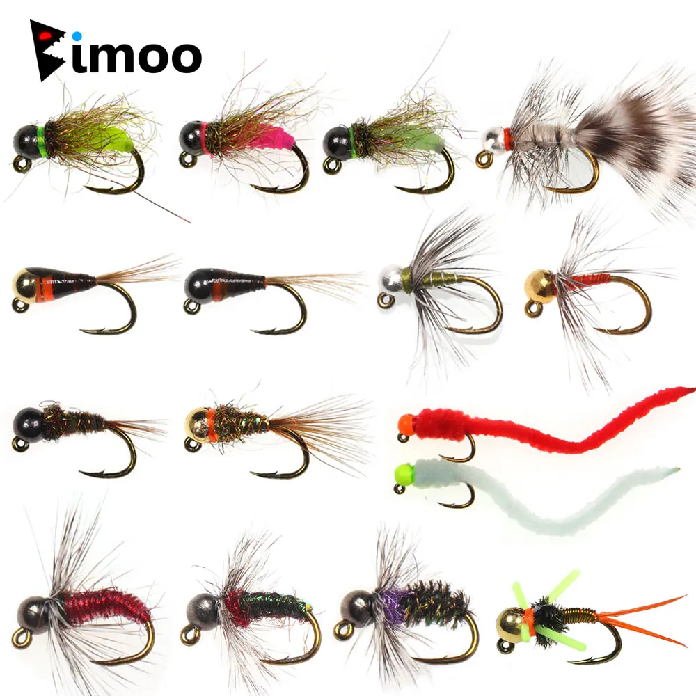 Bimoo 5/6 piezas#10~#16 Jig de púas, Jig de ninfa, Jig de gusano Squirmy, Bugger, mosca de hundimiento rápido, Señuelos de pesca de trucha mojados Euro Perdigon Ninfa