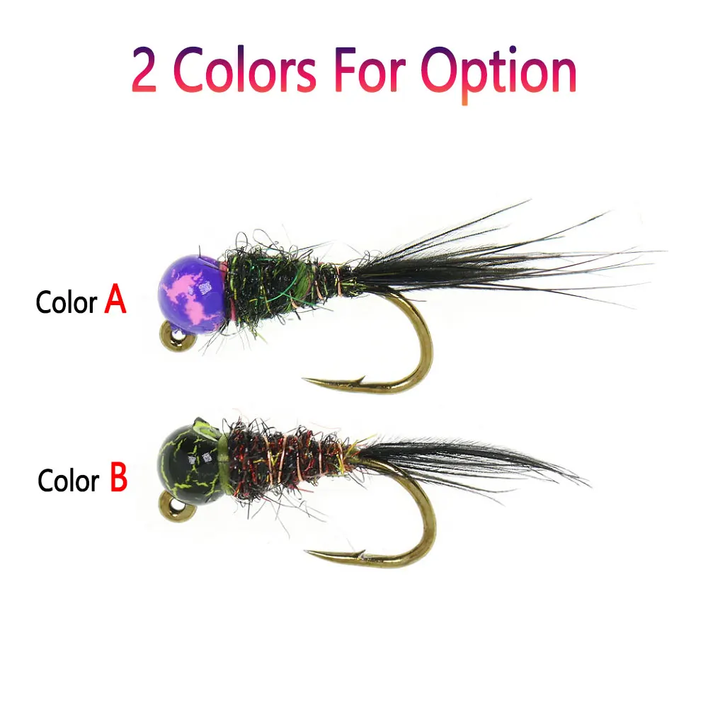 Bimoo 5/6 piezas#16 plantilla moleteada cabeza de cuentas plantilla ninfa de hundimiento rápido Euro perdigón húmedo ninfa panfish trucha señuelo de pesca con mosca cebo