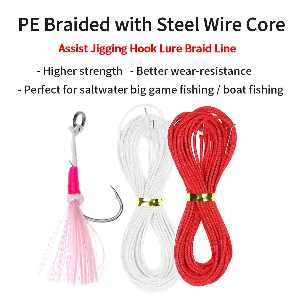Bimoo 5M/pack blanco rojo PE anzuelo de plantilla línea de asentamiento 7*7 núcleo de alambre de acero inoxidable 16 hebras línea de pesca trenzada 90/120/150LB