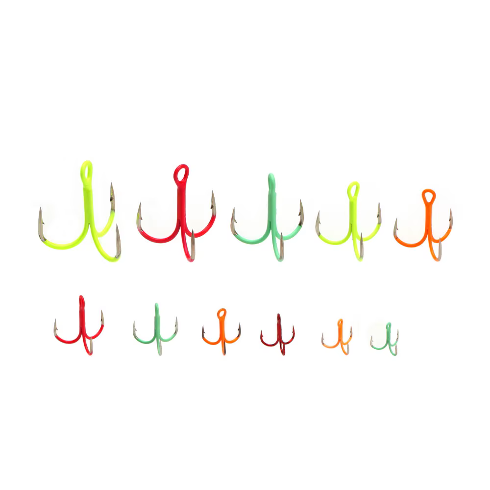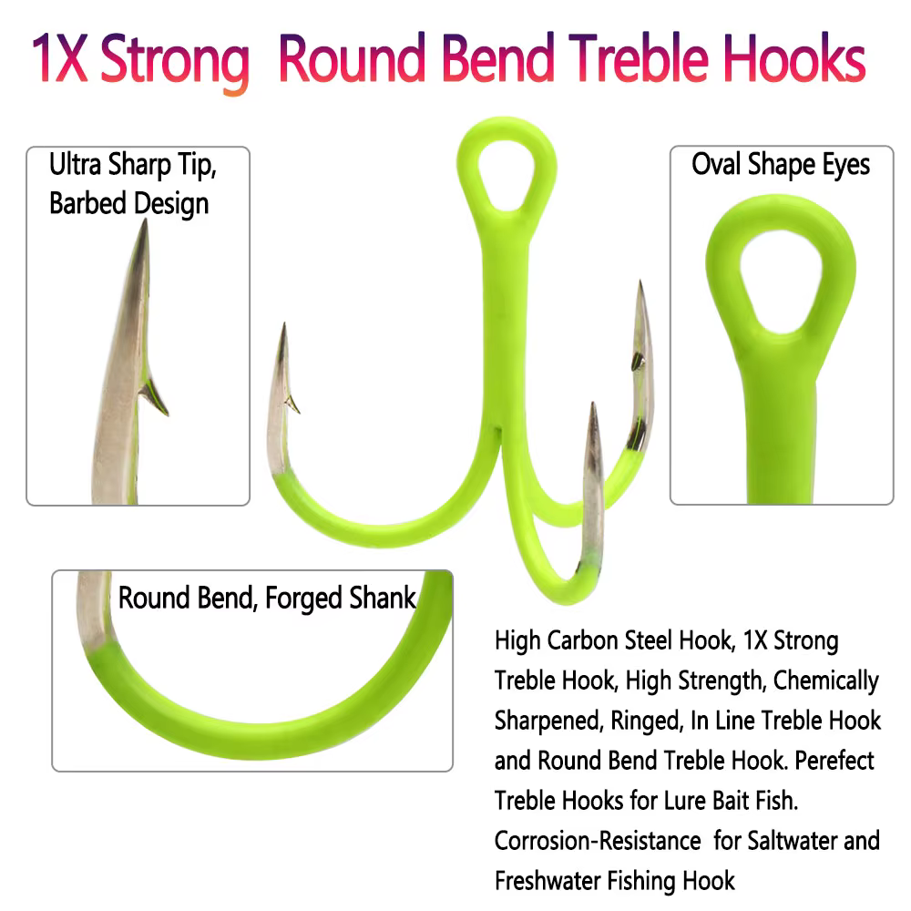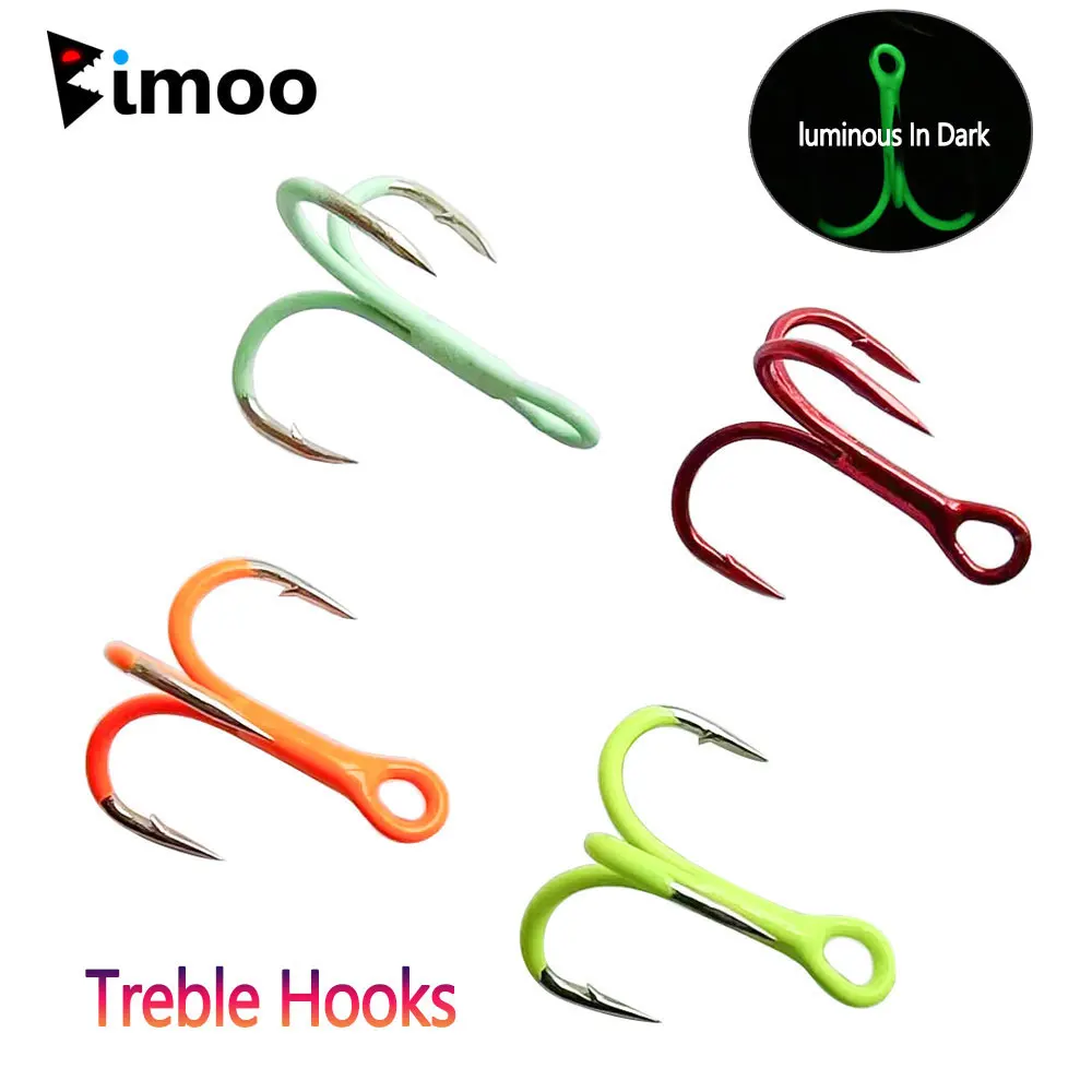 Bimoo-anzuelos triples de acero con alto contenido de carbono, 5 uds., anzuelo triple fluorescente/luminoso, señuelos de pesca de agua dulce y salada, cebo, señuelo de pesca