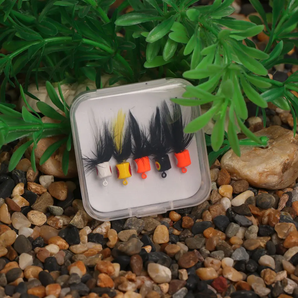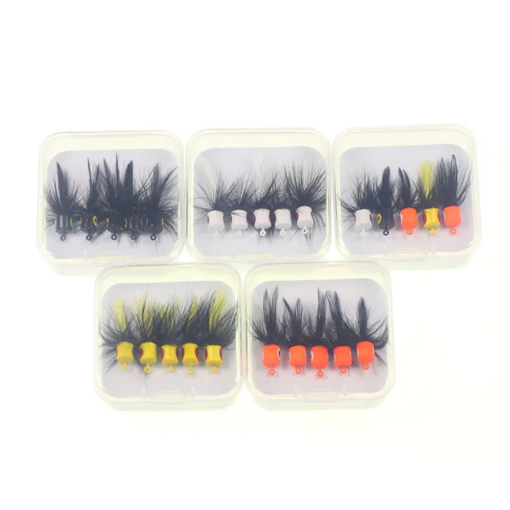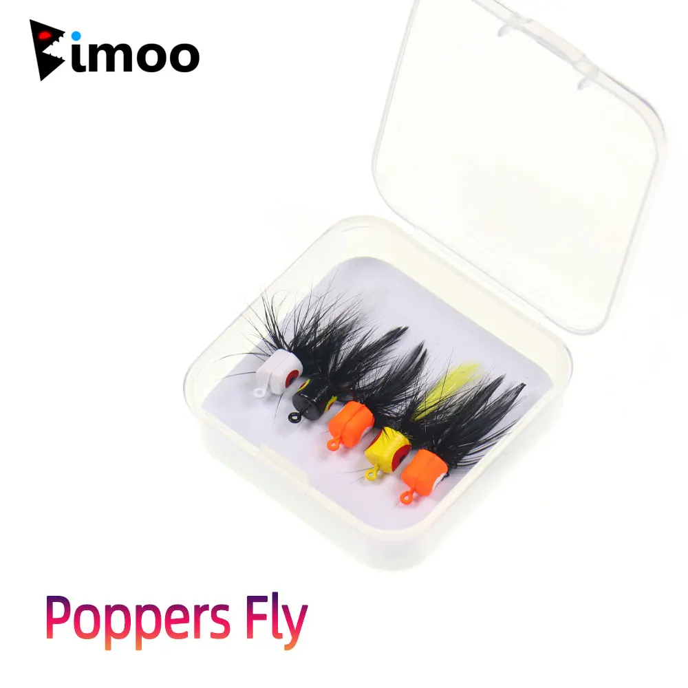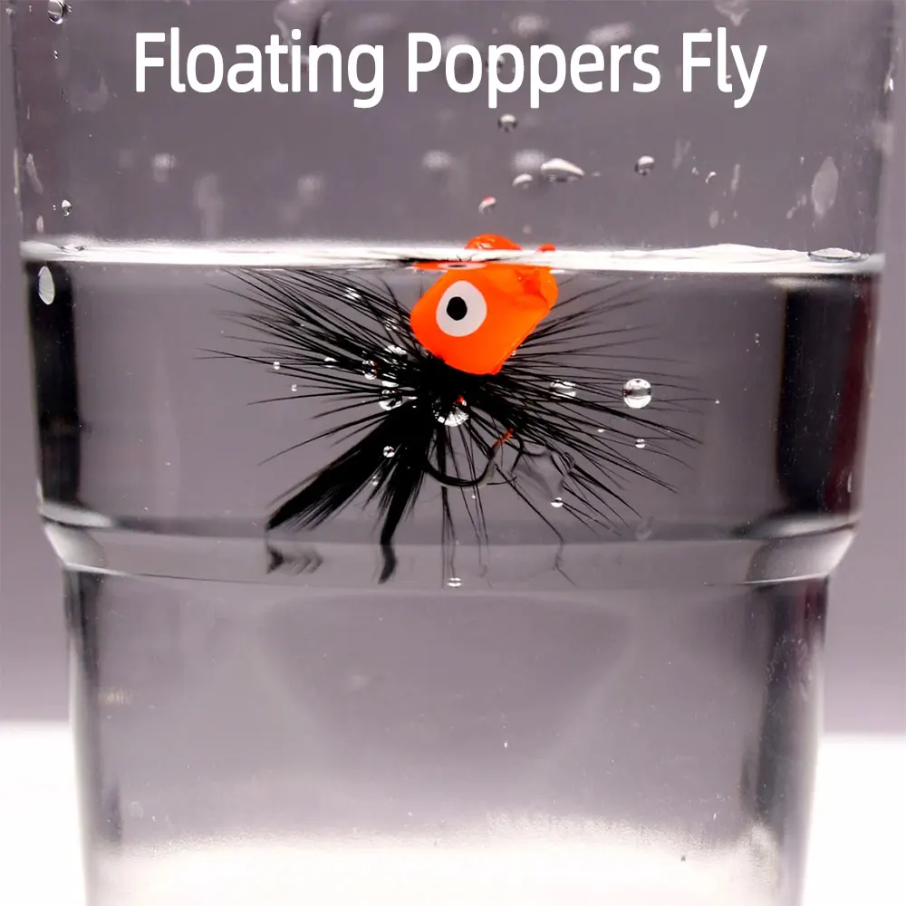 Bimoo 5pcs/Box #10 Topwater Fly Fishing Poppers Fly Floating Poppers Lure For Bluegill Bass Panfish Trout Fishing Lures Orange