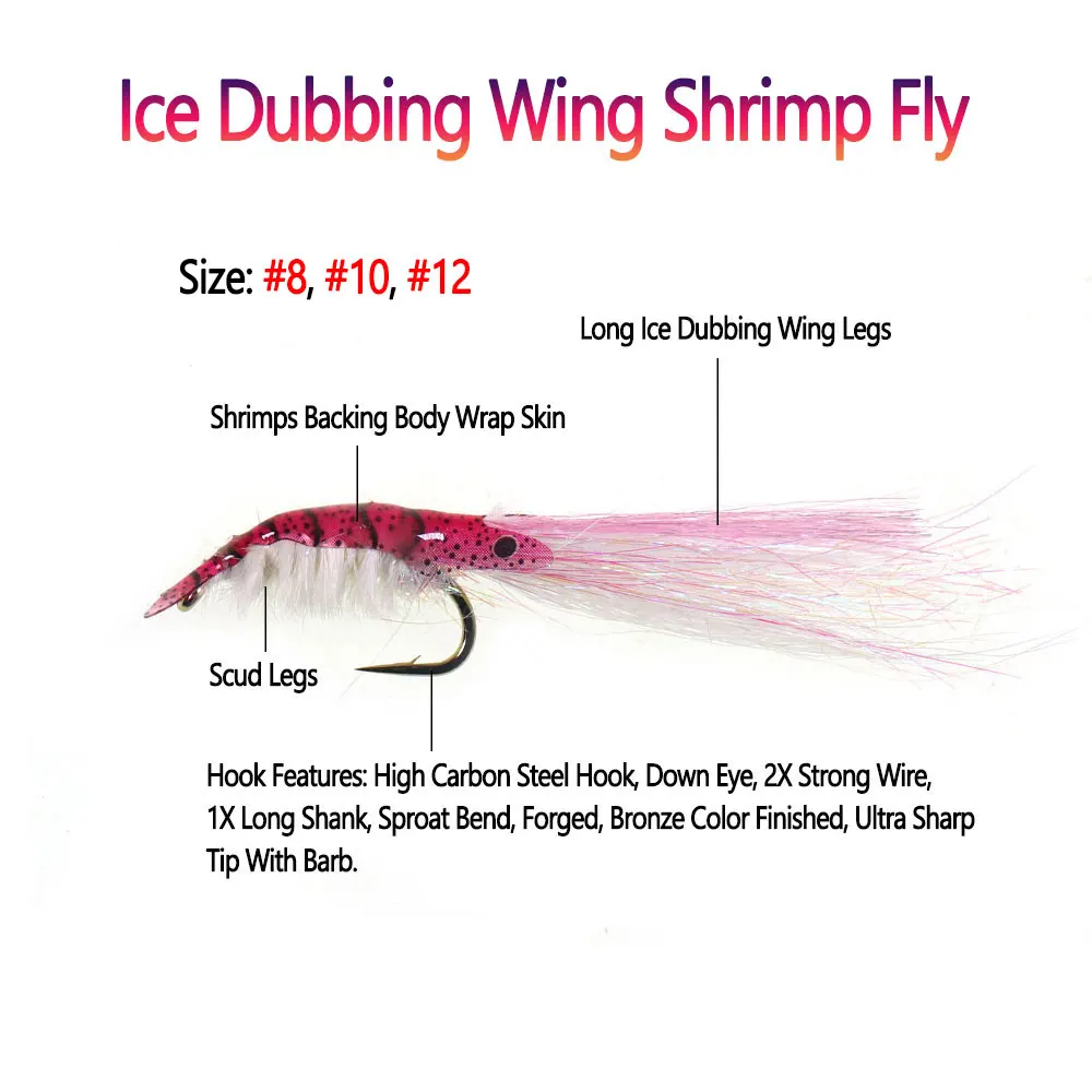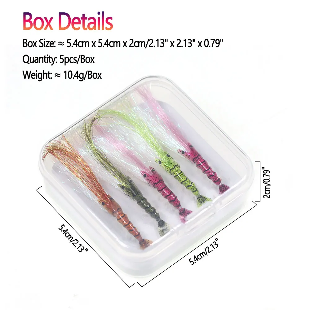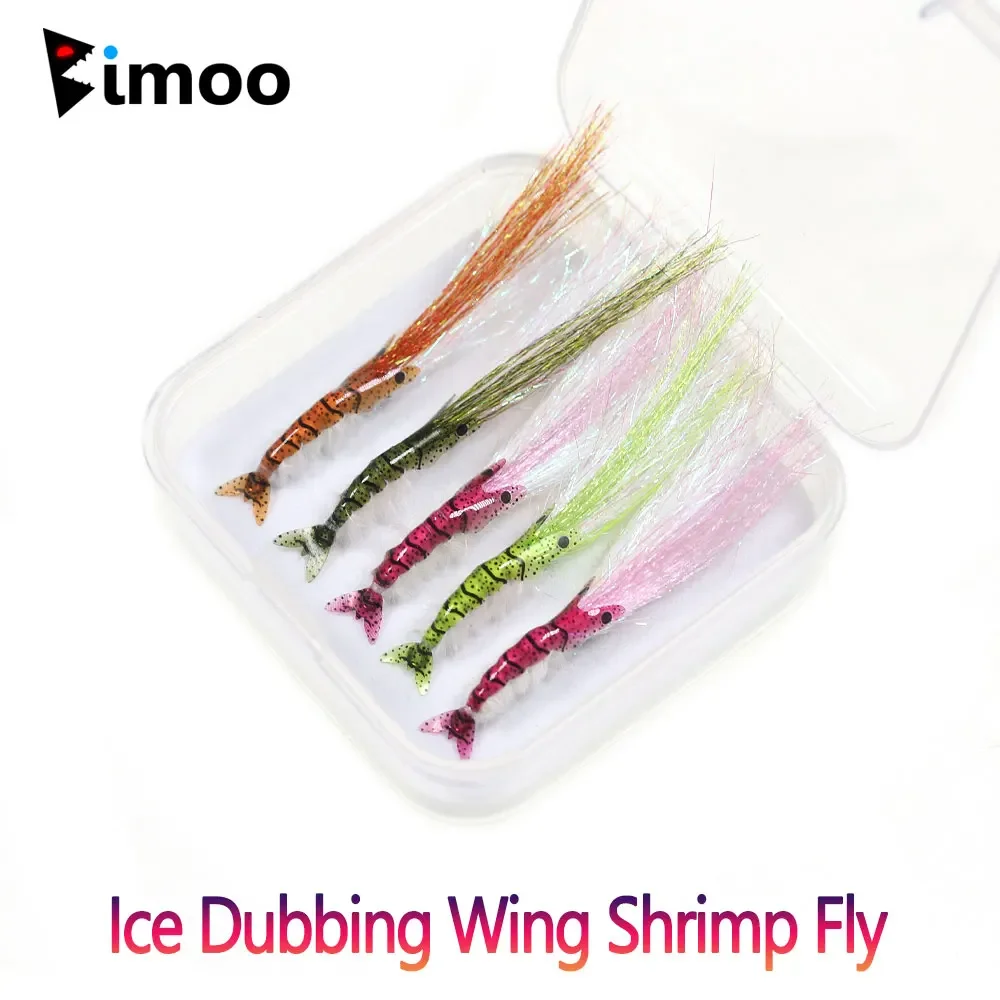 Bimoo 5 unids/caja#8#10#12 alas de doblaje de hielo, mosca de camarón, Scuds de hundimiento rápido, mosca para pez espina, galleta, trucha, carpa, señuelos de pesca en el mar, cebo