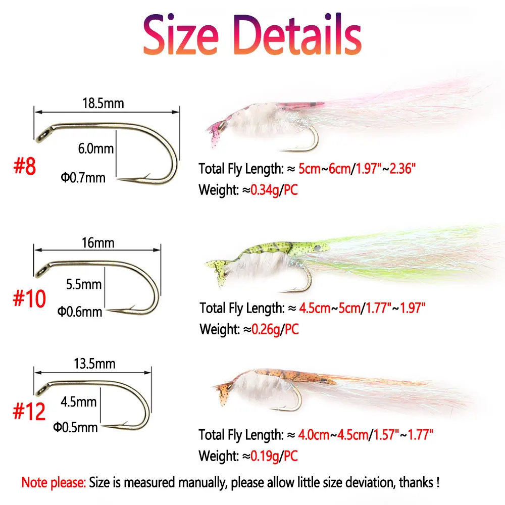 ------Las moscas de los camarones imitan una de las fuentes de forraje más urnas en agua salada.Estas fuentes alimenticias con alto contenido de proteínas son clave para muchas especies de peces de agua salada.Las moscas de los camarones son eficaces para los peces hueso, los permisos, los peces enrojeces e incluso las carpas en agua dulce.Si pescas las zapatillas, entonces es imprescindible una buena selección de moscas de los camarones.