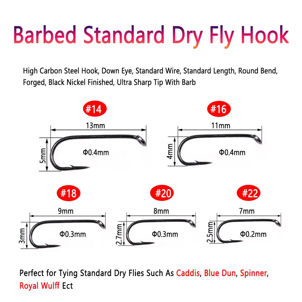 Bimoo-Anzuelo de mosca seca para pesca con mosca de 50/100, alambre estándar 2X, anzuelo de Ninfa, acabado de níquel negro, material para atado de moscas, tamaños 14 16 18 20 22