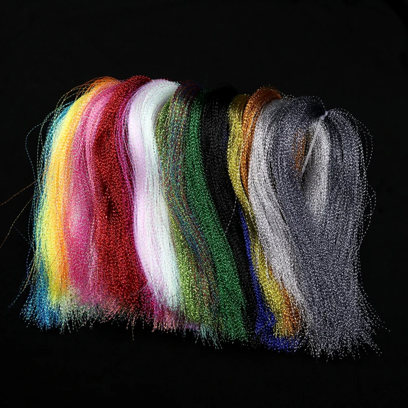 Bimoo-50 bolsas para atado de moscas, oropel trenzado, hilos de Flash para señuelo, anzuelo de plantilla, triples, naranja, rojo, azul, arcoíris, Chartreuse