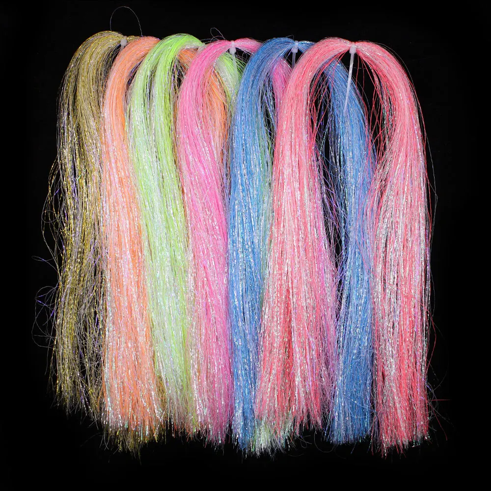 Bimoo 50 cm/19,69 pulgadas de largo luminoso Flashabou Tinsel Material para atar moscas Streamer trucha señuelo de pesca en el mar, señuelo Jig faldas de cola