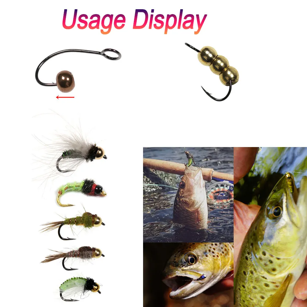 Bimoo, 50 Uds., 2,4mm, 2,8mm, 3,3mm, 3,8mm, cuentas de latón, cabeza de Ninfa, serpentina, cochecito lanudo, materiales para atar moscas húmedas, Señuelos de Pesca de trucha