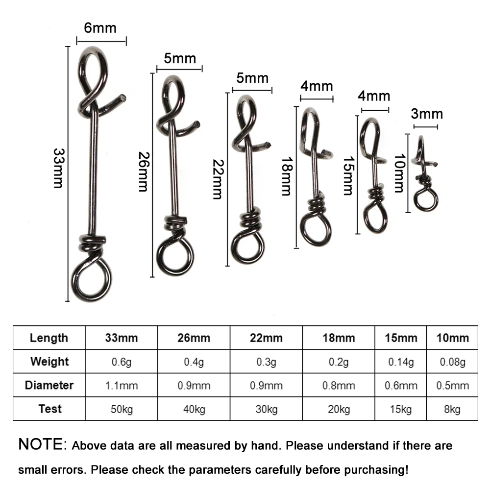 Bimoo 50 piezas de acero inoxidable de bloqueo rápido cierre de resorte hebilla señuelo Drop Rigs conector equipo de pesca de agua salada sujetadores sólidos
