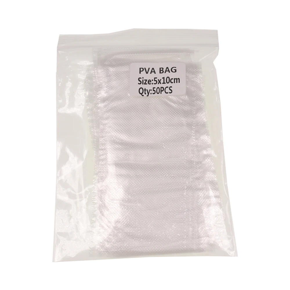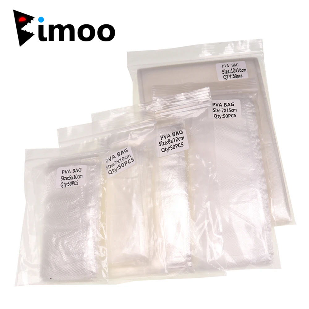 Bimoo 50 Uds bolsas PVA rápidas solubles en agua Material de cebo de pesca de carpa aparejos de pesca de carpa 5*10cm 7*10cm 8*12cm 12*16cm